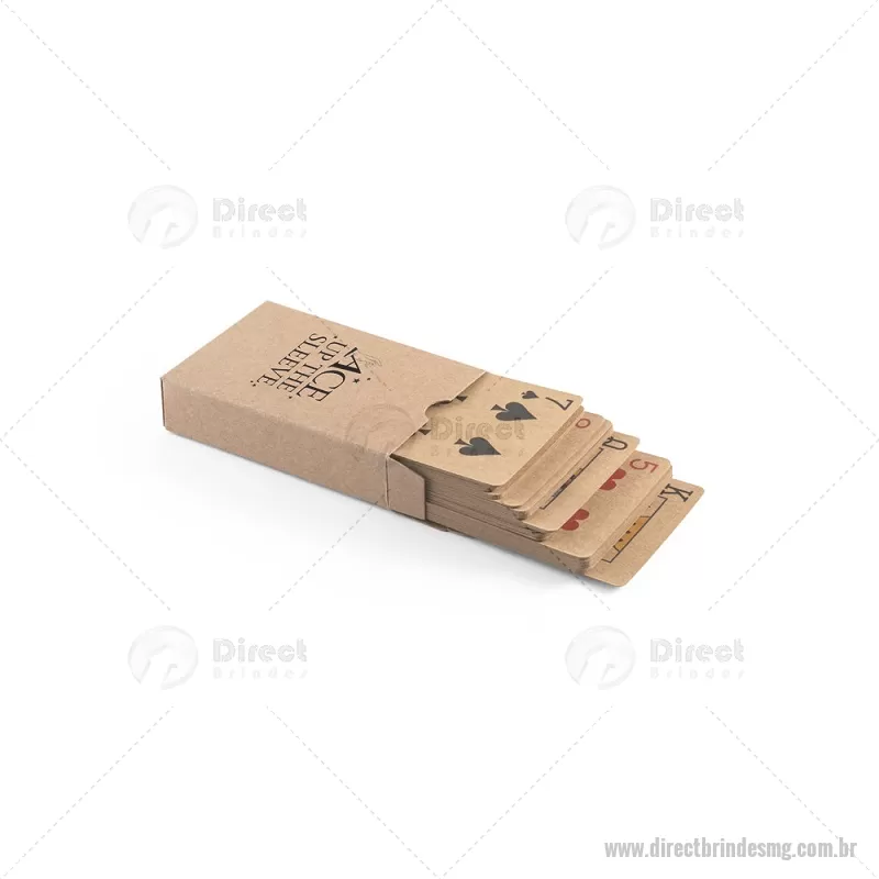 Baralho de 54 cartas clássicas em papel kraft Baralho com 54 cartas clássicas em papel kraft, proveniente de gestão florestal sustentável, ideal para compartilhar bons momentos com amigos e família. Fornecidas em caixa presente de papel kraft reciclado. A cor e o resultado da impressão nos materiais naturais pode variar entre produtos. medidas: 60 x 90 x 20 mm Peso do Produto (g.): 57 - - DRTMGJOG011