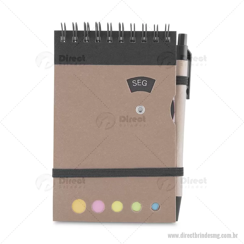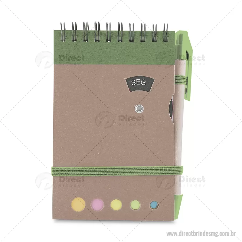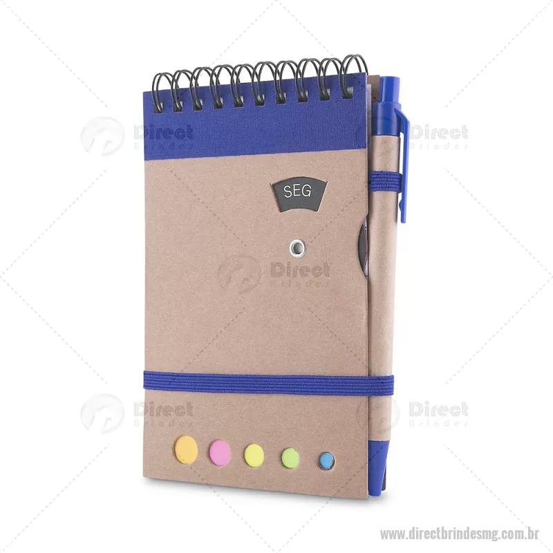 Mini caderno A6 com caneta com capa em papel kraft, com 70 folhas pautadas e blocos adesivos (sticky notes) coloridos. Acompanha disco rotativo na capa com os dias da semana e caneta produzida em papelão reciclado com detalhes em plástico e escrita em azul. Peso do Produto: 0,088kg (Caderno) Peso do Produto: 0,004kg (Caneta) Dimensão Produto: 14,5x9cm (Caderno) Dimensão do Produto: 3,6xø0,9cm (Caneta) - - DRTMGBLC275