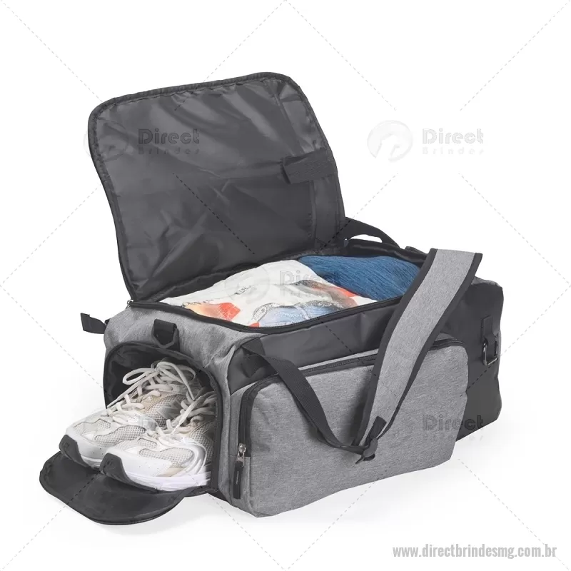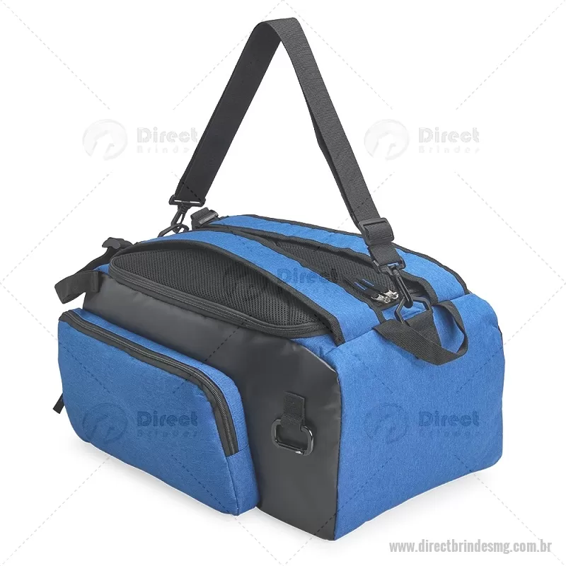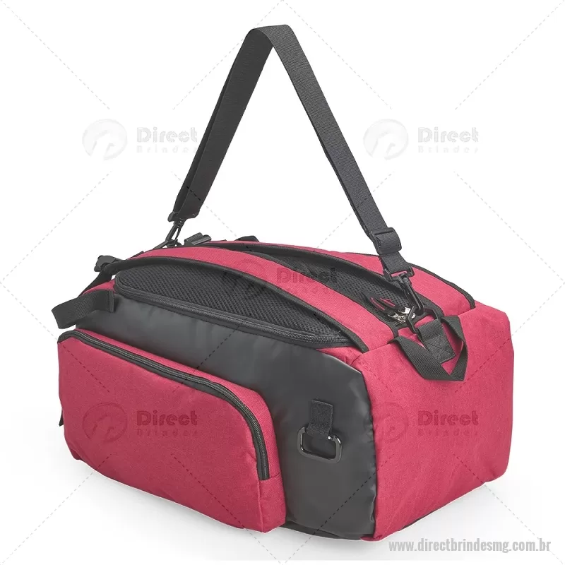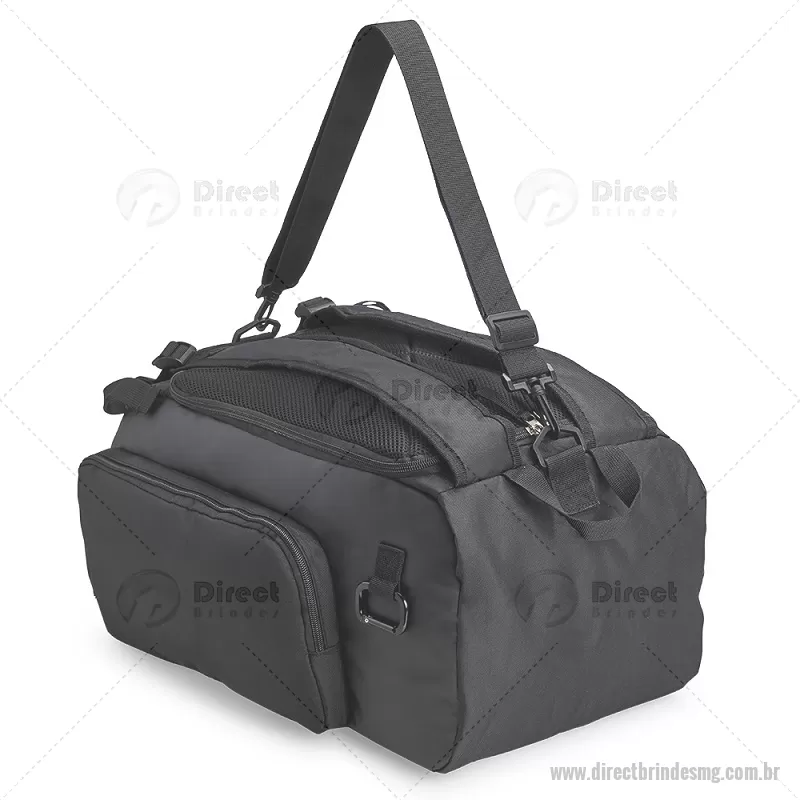 Bolsa esportiva em poliéster resistente à água, com detalhes emborrachados e capacidade de até 40 litros. Possui três compartimentos principais, incluindo bolso para notebook de até 13” e espaço separado para calçados. Conta com bolso lateral em malha, alça transversal ajustável e removível, além de alças acolchoadas e área traseira com espuma respirável, permitindo uso como mochila. - - DRTMGBOL050