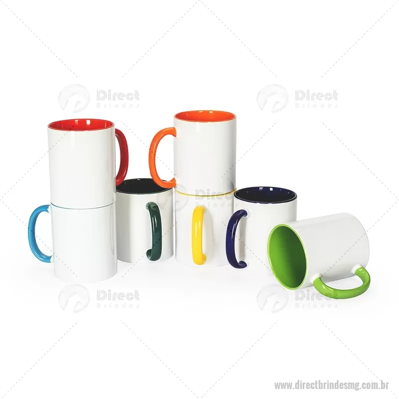 Caneca em cerâmica branca com capacidade de 330ml, ideal para sublimação e personalização. Possui acabamento brilhante que garante excelente fixação e definição das cores na estampa. Disponível também na versão bicolor, com interior e alça coloridos, agregando mais destaque e variedade ao produto. Indicada para uso com bebidas quentes ou frias, sendo perfeita para brindes, presentes personalizados ou revenda. - - DRTMGCANP002
