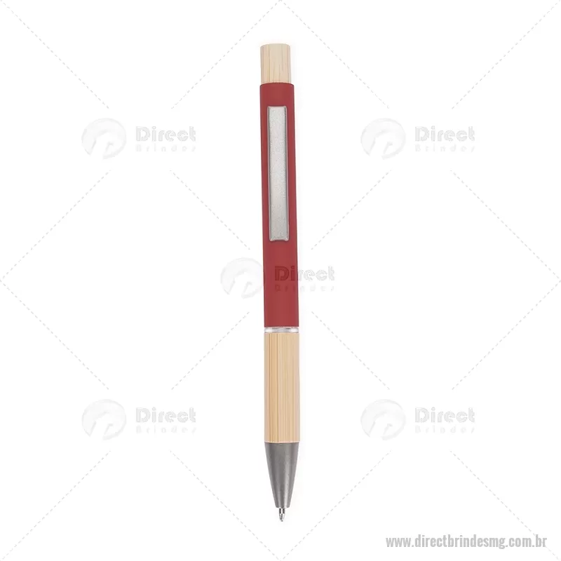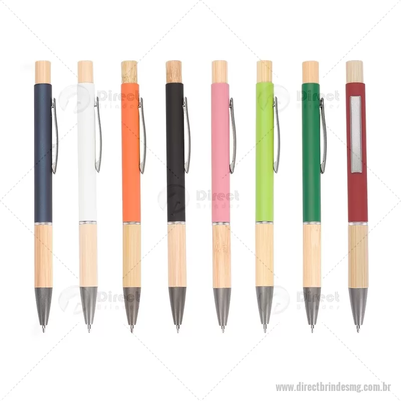 Caneta esferográfica azul 1,0 mm com corpo metálico, detalhes em bambu e acionamento por clique. Leve e confortável, proporciona escrita precisa no dia a dia. - - DRTMGCMT296