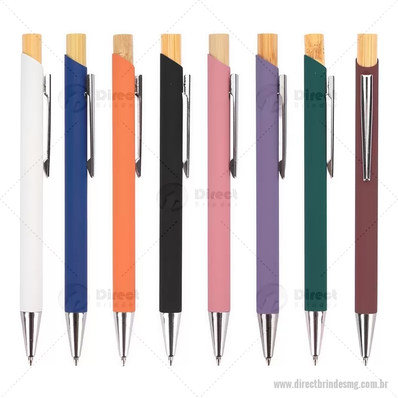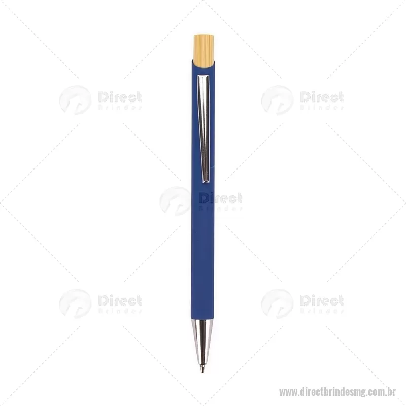 Caneta esferográfica azul 1,0 mm com corpo metálico e acionamento por clique em bambu. Oferece escrita leve, confortável e precisa para o uso diário. - - DRTMGCMT297