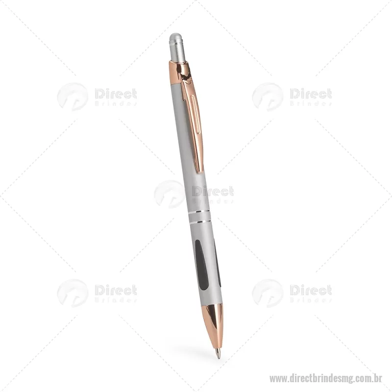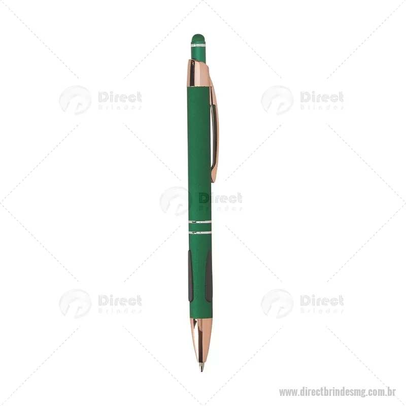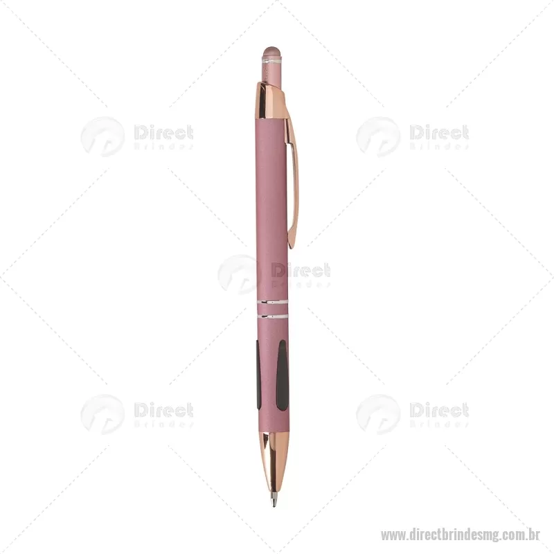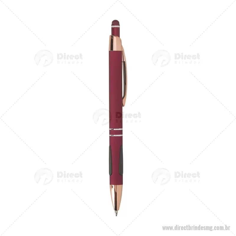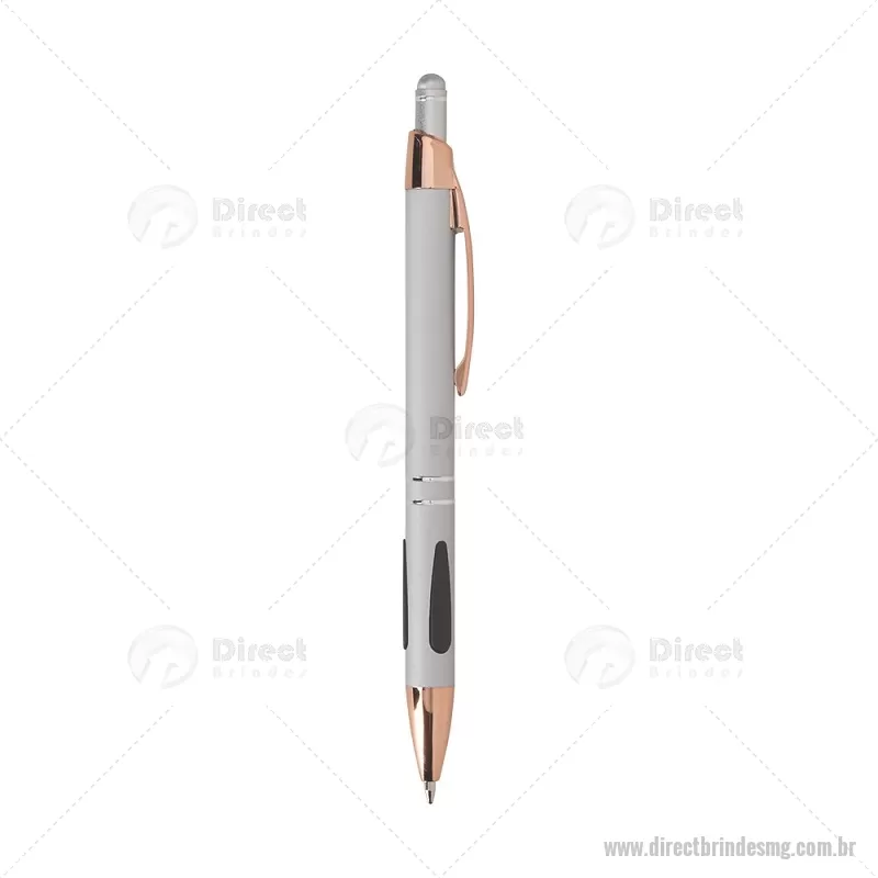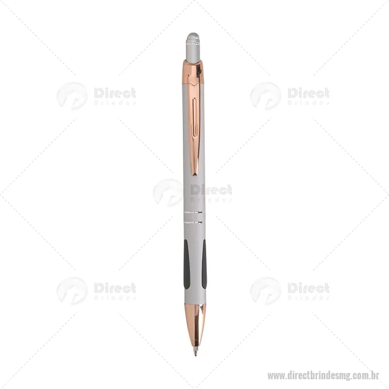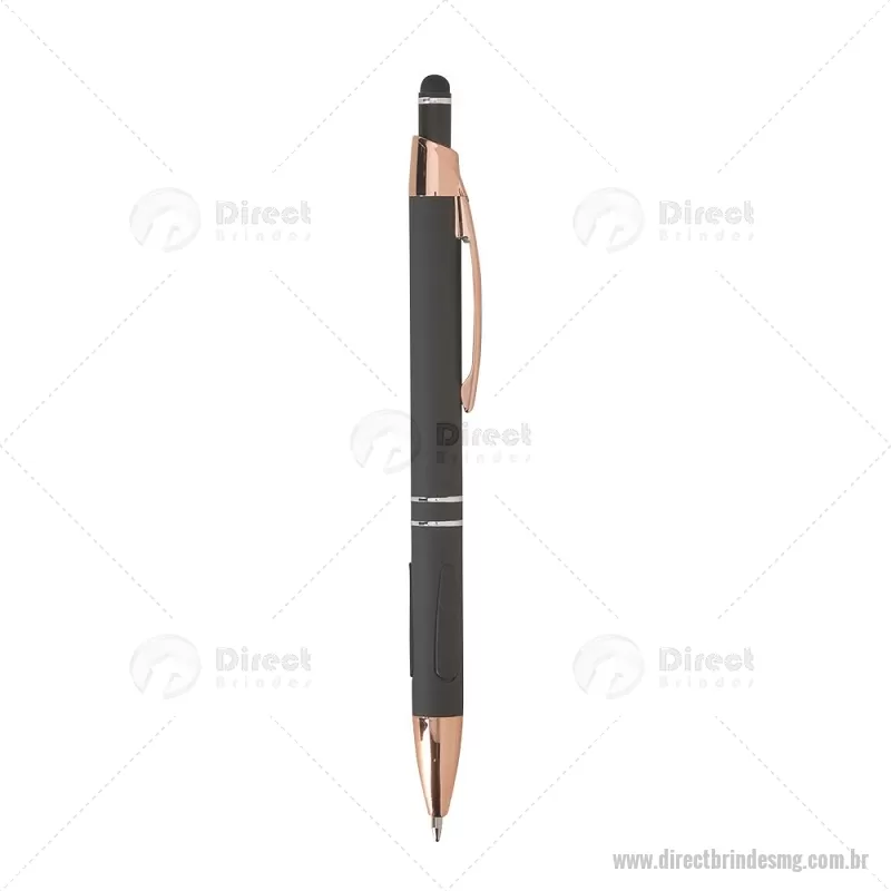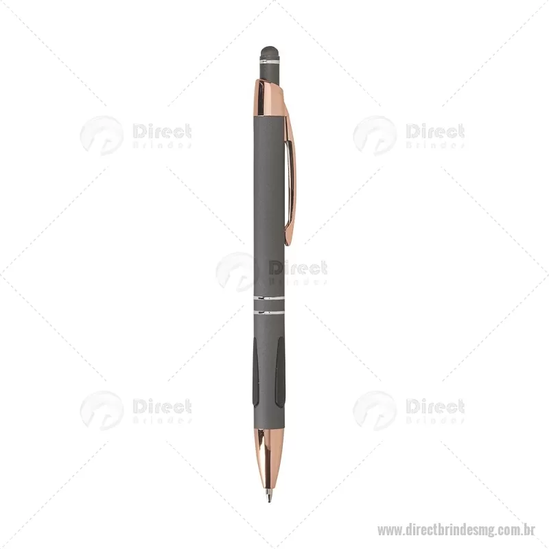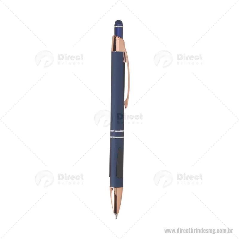 Caneta em metal com detalhes emborrachados, carga esferográfica azul 1,0 mm e acionamento por clique. Possui ponta touch emborrachada para uso em telas sensíveis ao toque, unindo escrita e praticidade em um só item. - - DRTMGCMT295