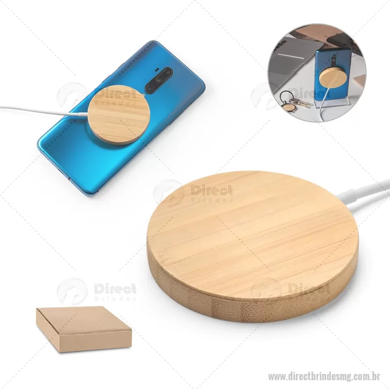 Carregador magnético por indução super-rápido em bambu 15 W Carregador magnético por indução (wireless) super-rápido em bambu. Potência de carregamento super-rápido de 15W. Incluso cabo de carregamento USB-C de 1 metro. Compatível com dispositivos móveis com tecnologia de carregamento sem fios. Fornecido em caixa presente de papel kraft reciclado. A cor e o resultado da impressão nos materiais naturais pode variar entre produtos. Medidas Produto: Ø59 x 8 mm Peso do Produto (g.): 35 - - DRTMGTEC533