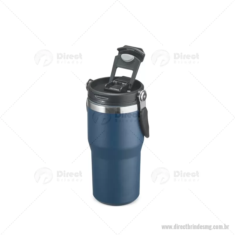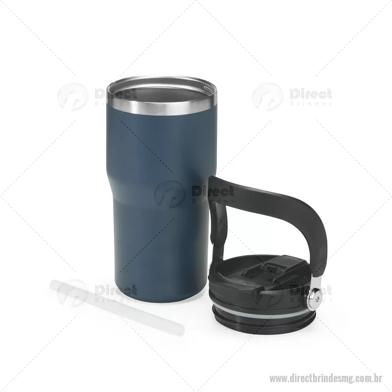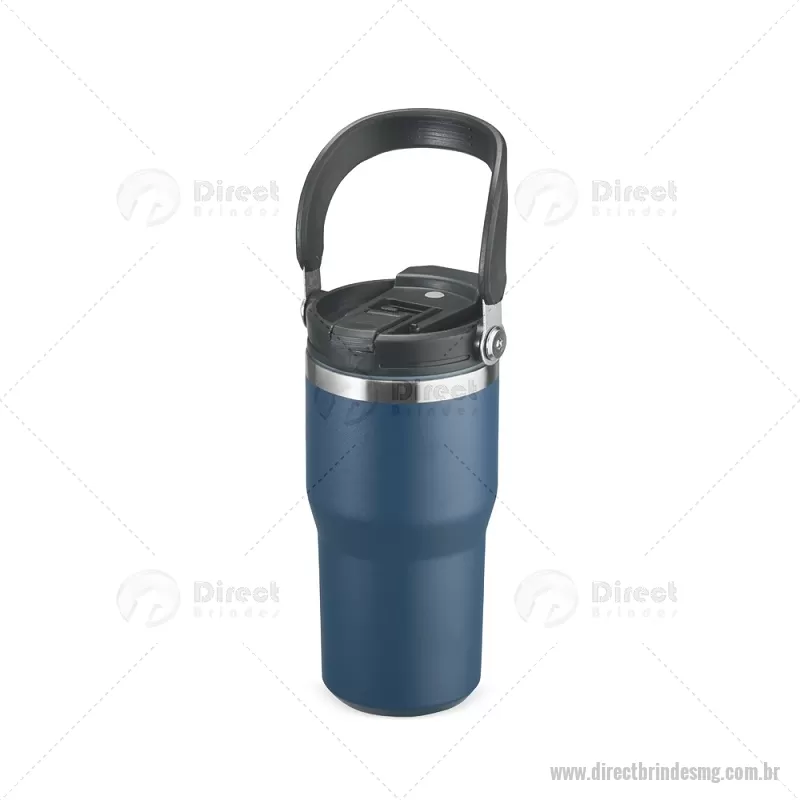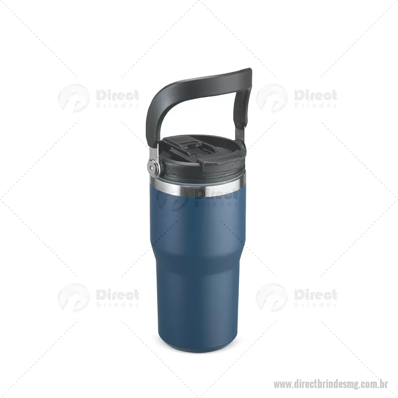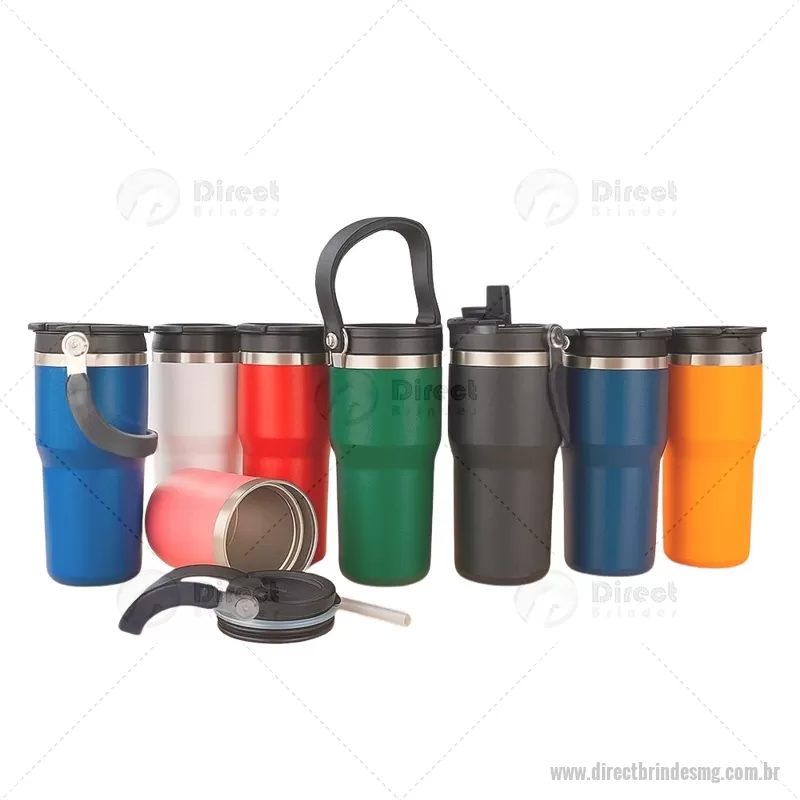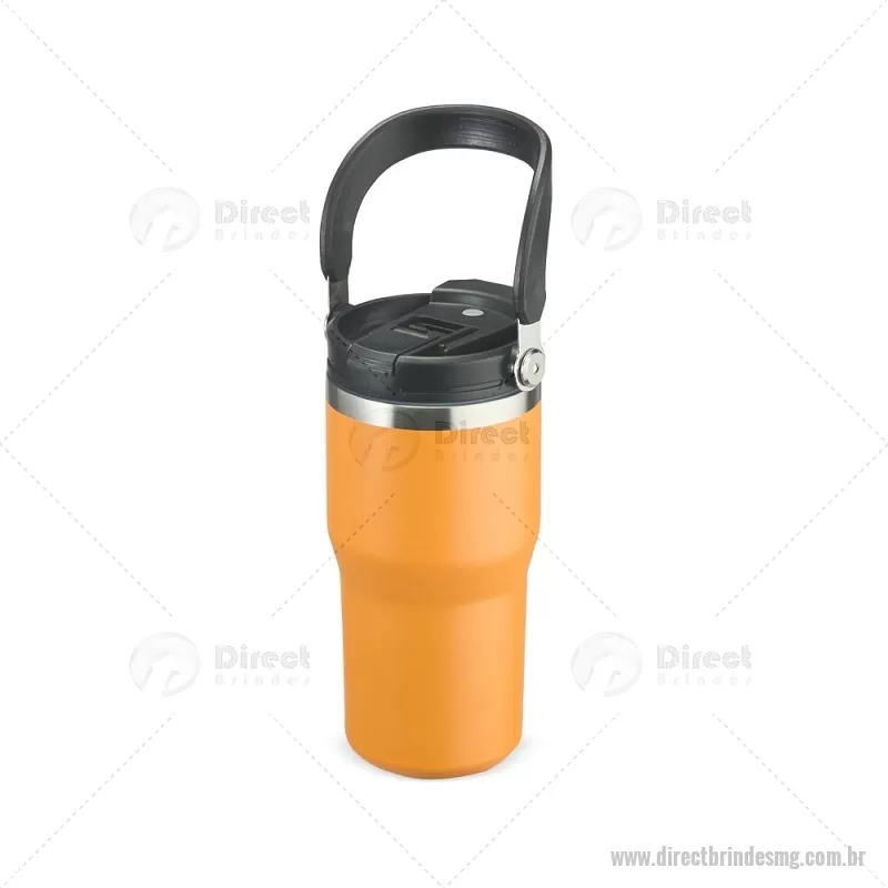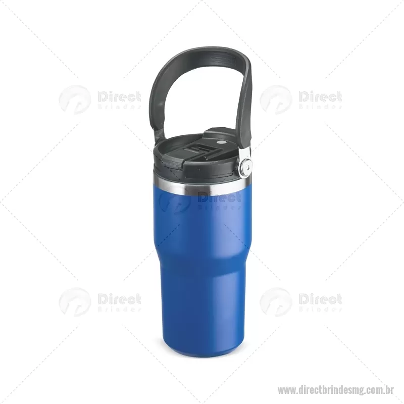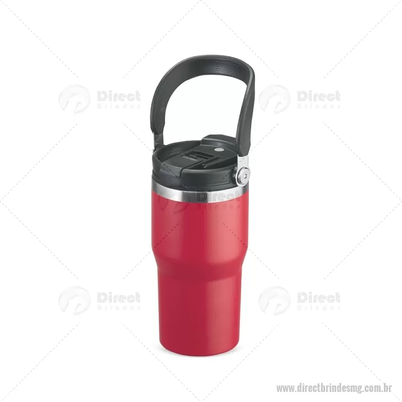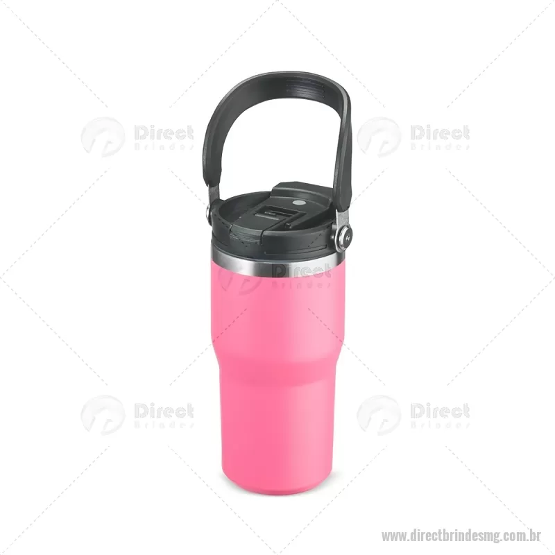 Copo térmico de 600 ml em inox com pintura eletrostática e parede dupla com vedação a vácuo, ideal para manter a temperatura das bebidas por mais tempo. Possui tampa rosqueável com bico flip e proteção para o bocal, canudo interno removível e alça fixa para transporte. Prático e resistente para o dia a dia. - - DRTMGCPO149