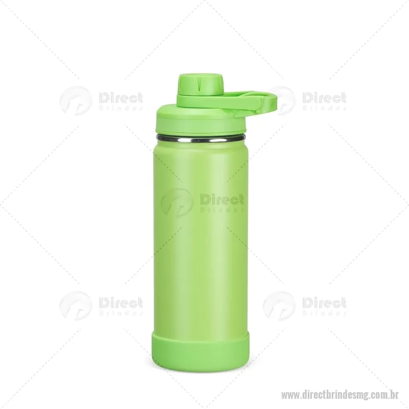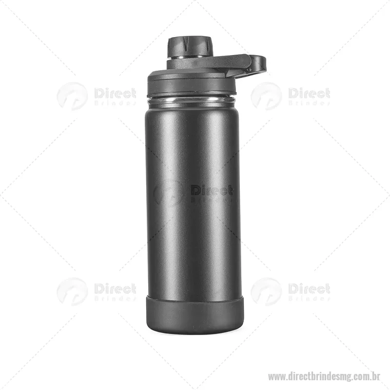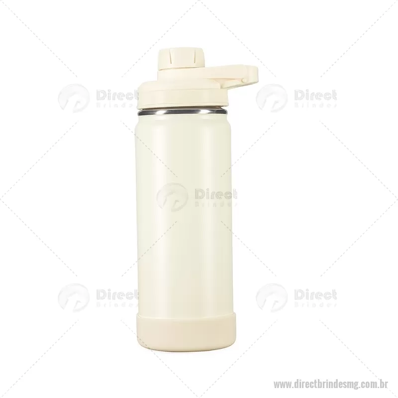 Garrafa Térmica 550ml inox com pintura eletrostática. Mantém a temperatura de líquidos por mais tempo graças à estrutura de parede dupla e ao isolamento a vácuo. Possui tampa plástica rosqueável com protetor de bocal e alça fixa. Acompanha protetor removível em silicone para a base. Altura : 22,5 cm x Largura : 7,4 cm x Circunferência : 23,3 cm Tamanho total aproximado (CxL): Diâmetro: 5,5 cm Peso aproximado (g): 290 - - DRTMGGAT172