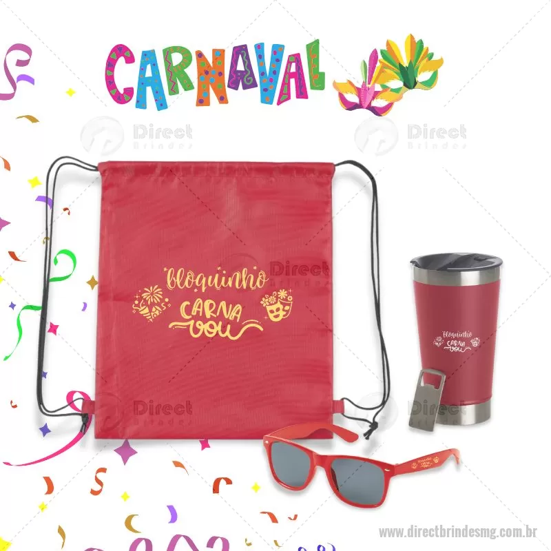 Kit Carnaval 3 Peças Kit Torcida Copa do Mundo Contém: 1 Mochila Saco em Poliéster Tamanho total aproximado (CxL): 41 cm x 34 cm - Gravação em Silk screen 1 cor (MCS032) 1 Copo Térmico 500ml com tampa e abridor de garrafa. Confeccionados com dupla parede de inox, isolada a vácuo. Conservação aproximada líquidos quentes: 1h / Conservação aproximada líquidos gelados: 7h / Conservação aproximada líquidos com gelo: 15h Ideal para bebidas geladas ou quentes. - Gravação laser.(CPO083) 1 Óculos de sol personalizável com proteção de 400 UV. Consultar cores disponíveis. - Gravação em Silk screen 1 cor (OCL001) * Verificar cores de produtos Disponíveis. - - DRTMGKIT029