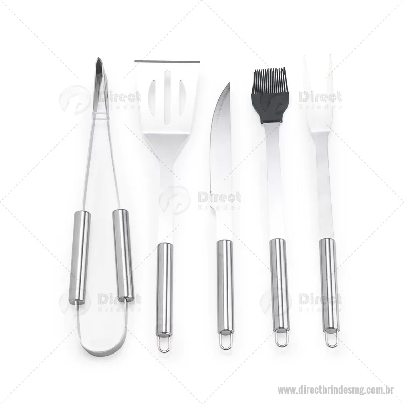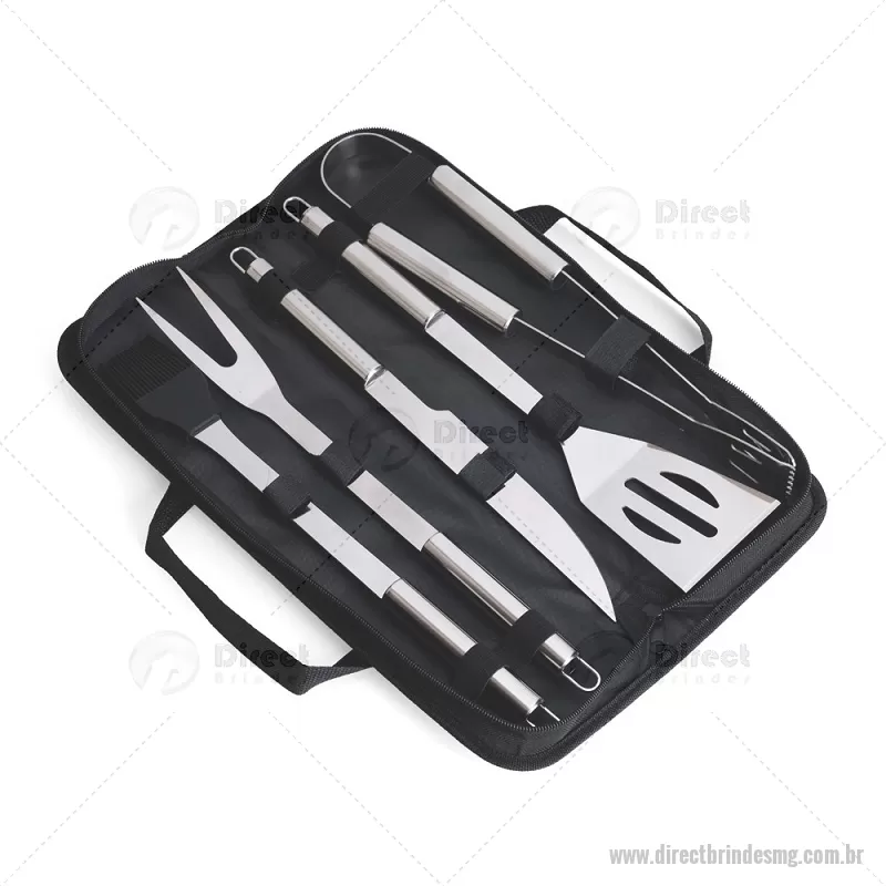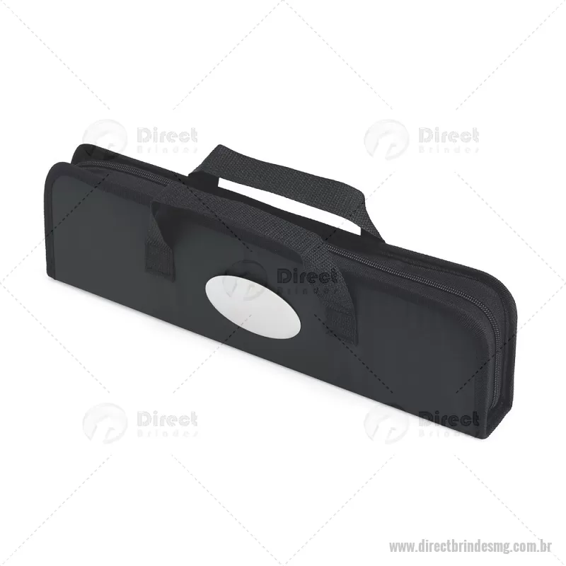 Kit Churrasco 5 Peças Descrição: Kit churrasco com cinco peças em inox. O conjunto inclui: uma faca de 6 polegadas, um garfo, uma espátula, um pincel com cerdas de silicone e um pegador. Acompanha estojo em nylon com um par de alças para transporte e placa metálica personalizável com verso autoadesivo para fixação. Altura : 4,5 cm x Largura : 11 cm x Comprimento : 38,5 cm Peso aproximado (g): 662 - - DRTMGKCH094