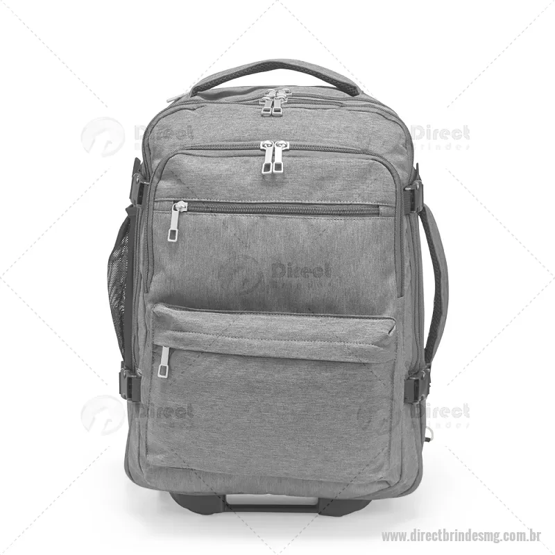 Mochila Poliéster 24L Mochila em poliéster impermeável com capacidade para até 24 litros. Possui compartimento interno principal com dois bolsos de fechamento em zíper e cinta compressora para roupas. Conta ainda com dois compartimentos frontais, sendo um deles com divisória para notebooks de até 15,6 polegadas, um par de bolsos menores com fechamento em zíper e um bolso lateral em tela de nylon. Dispõe também uma alça retrátil contida em um compartimento fechado em zíper e duas rodinhas para oferecer mais uma possibilidade de uso, além de duas alças de mão, uma na parte superior e outra na lateral, permitindo o transporte pela horizontal, e duas alças para as costas com revestimento em tecido acolchoado. Altura : 45 cm x Largura : 31 cm x Profundidade : 16 cm Peso aproximado (g): 2409 - - DRTMGMC241