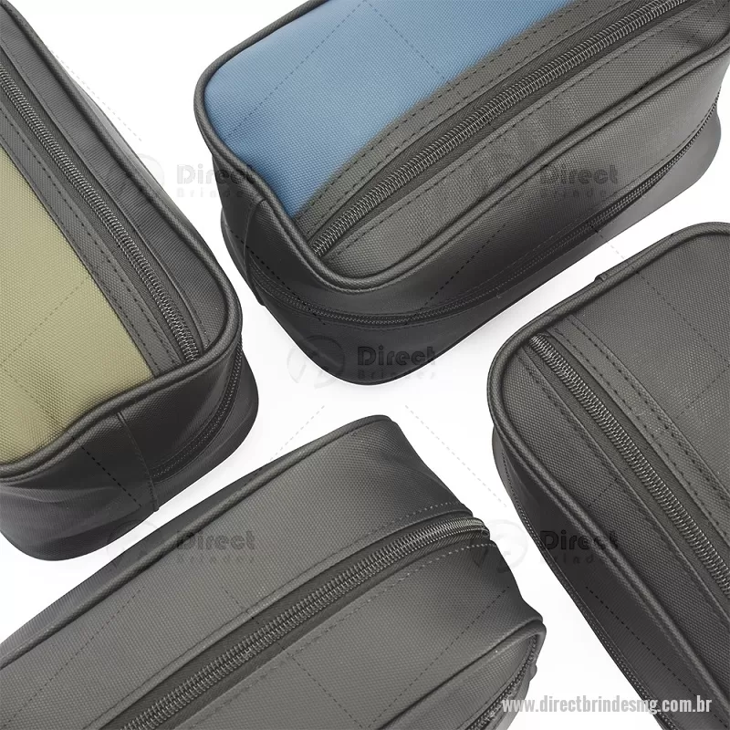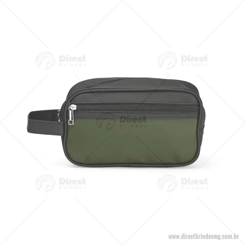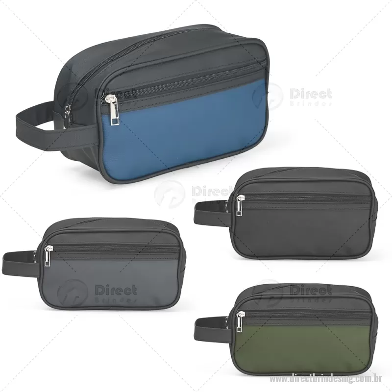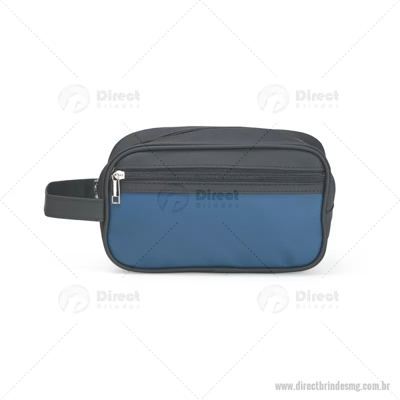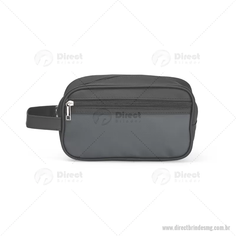 Nécessaire em couro sintético impermeável com fechamento em zíper. Possui bolso frontal também com zíper e alça lateral de mão. Altura : 14 cm x Largura : 24 cm x Profundidade : 9,5 cm Peso aproximado (g): 173 - - DRTMGNC154