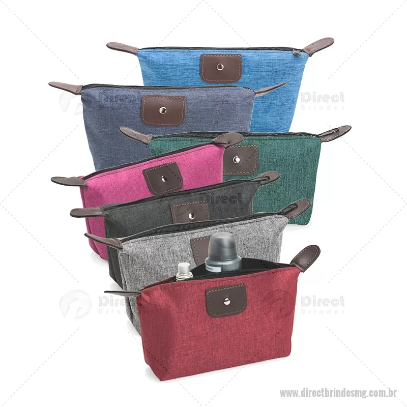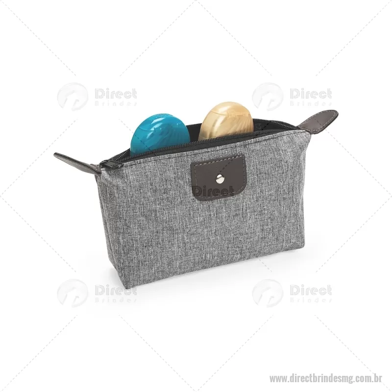 Nécessaire compacto em poliéster com mescla de PVC resistente à água. Possui fechamento em zíper e acabamento com detalhes em bidim e metal, oferecendo praticidade e um visual moderno para organizar pequenos itens do dia a dia. - - DRTMGNC150
