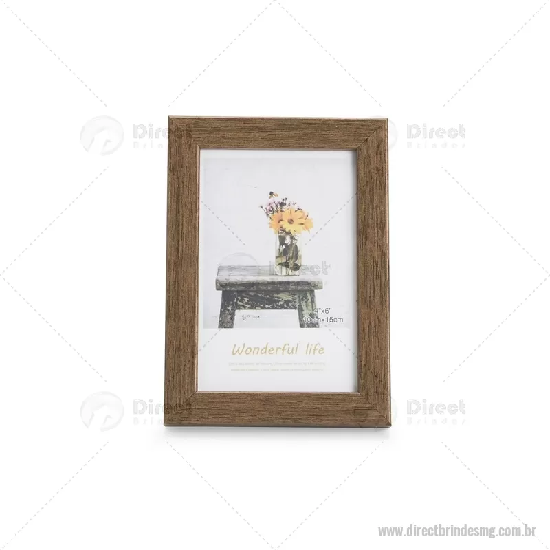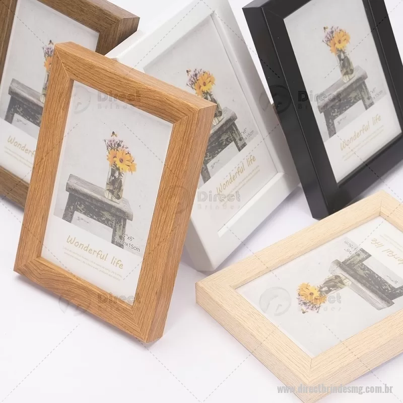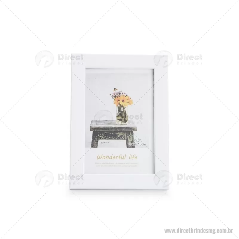 Porta-retratos para fotos no tamanho 10 x 15 cm, indicado para uso tanto na posição vertical quanto horizontal. Possui moldura em PVC, visor frontal em acetato, fundo em MDF e travas metálicas que garantem firmeza e fácil troca da imagem. Ideal para decorar ambientes com praticidade. - - DRTMGPR010