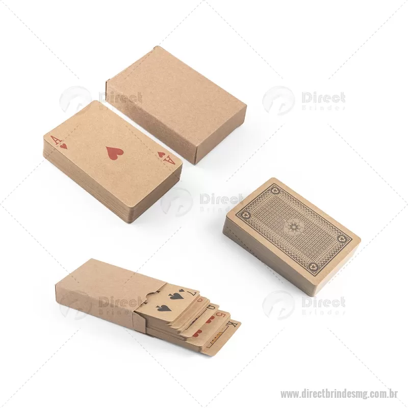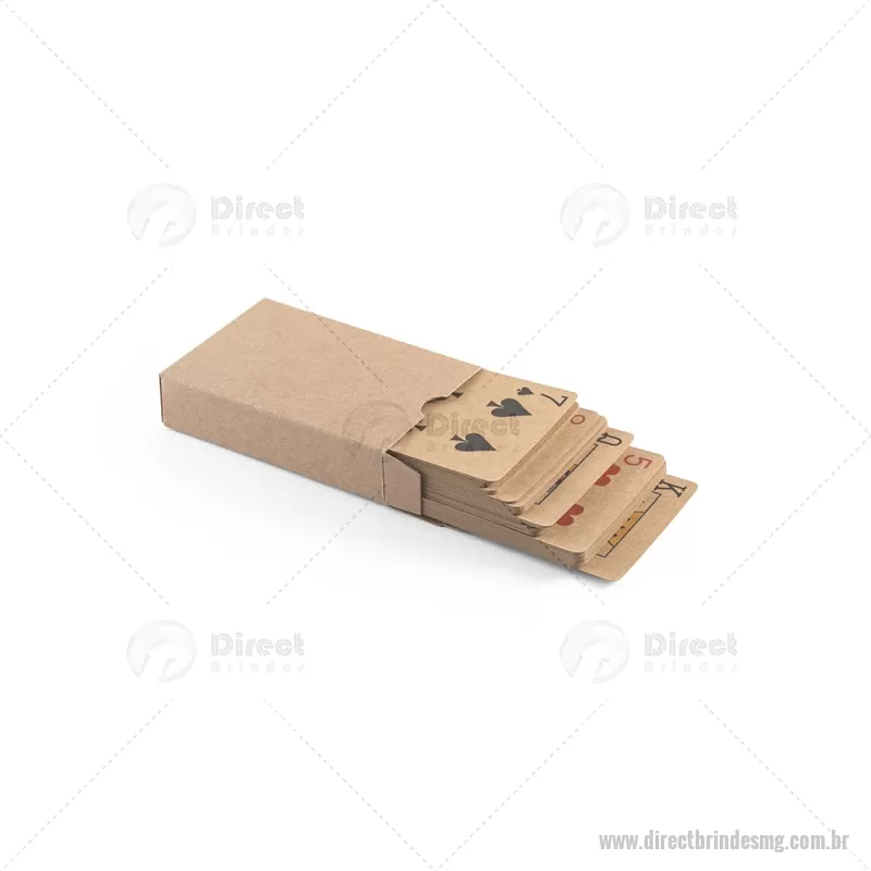Baralho de 54 cartas clássicas em papel kraft Baralho com 54 cartas clássicas em papel kraft, proveniente de gestão florestal sustentável, ideal para compartilhar bons momentos com amigos e família. Fornecidas em caixa presente de papel kraft reciclado. A cor e o resultado da impressão nos materiais naturais pode variar entre produtos. medidas: 60 x 90 x 20 mm Peso do Produto (g.): 57 - - DRTMGJOG011