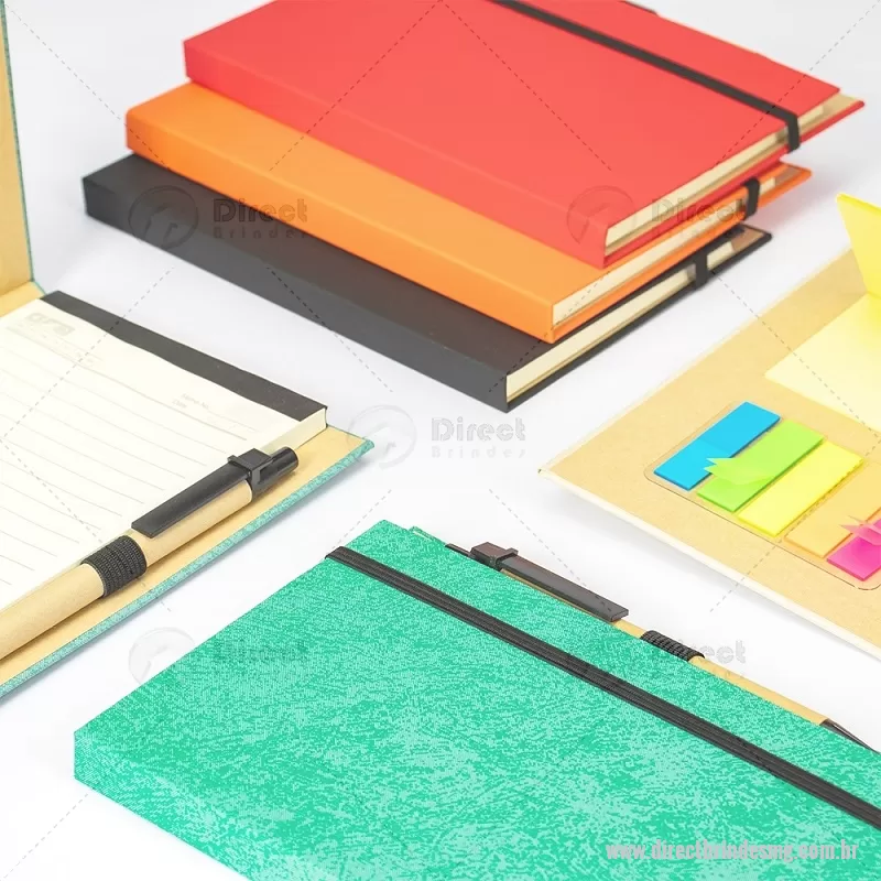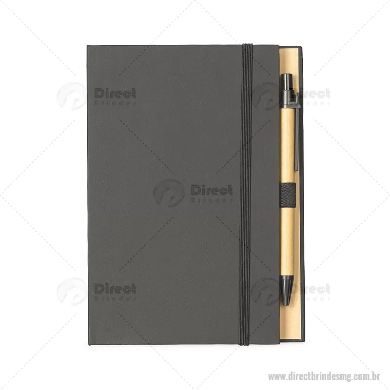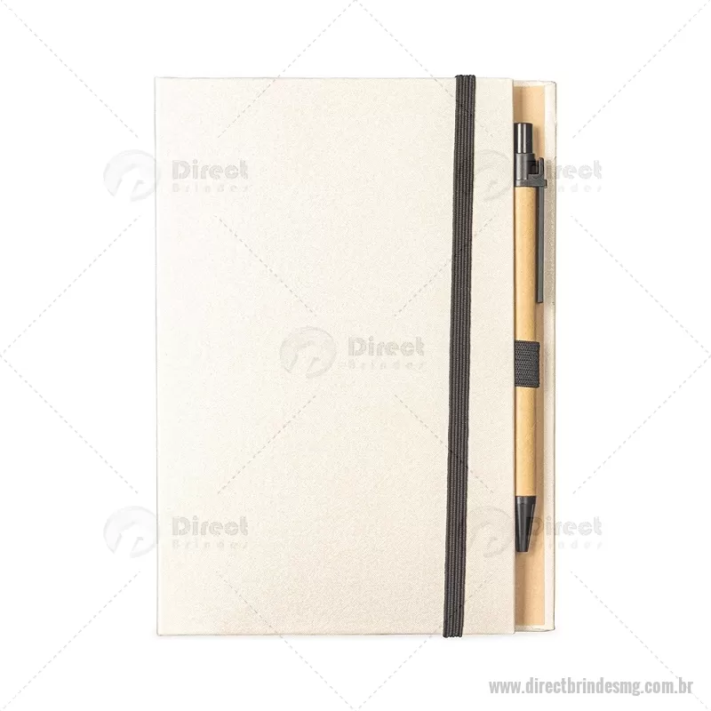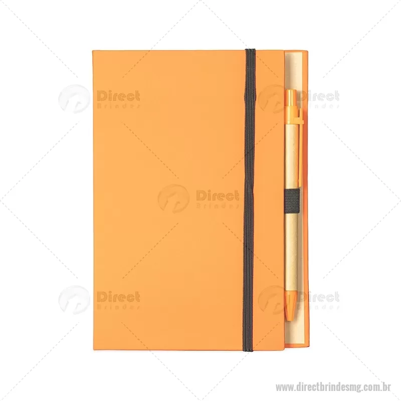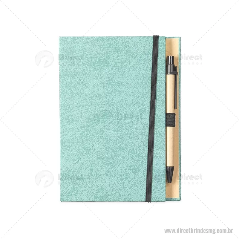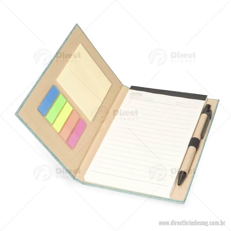 Bloco de Anotações com Autoadesivos e Caneta Com capa revestida em papel especial e fita elástica para fechamento. Contém aproximadamente 80 folhas amareladas destacáveis com pauta, além de um bloco com cerca de 20 folhas autoadesivas amarelas e aproximadamente 100 marcadores de página autoadesivos, divididos em cinco cores diferentes. Acompanha uma caneta esferográfica com carga azul de 1.0mm e acionamento por clique, corpo em papelão e demais componentes em plástico. Largura : 13 cm x Espessura : 1,4 cm x Comprimento : 18 cm Tamanho total aproximado (CxL): Caneta: 14 cm x 1 cm Peso aproximado (g): 187 - - DRTMGBLC267
