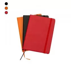 Caderneta emborrachada com porta caneta em nylon, marcador de página em cetim e fita elástica para lacre. Contém aproximadamente 80 folhas pardas com pauta. - - DRTMGBLC205
