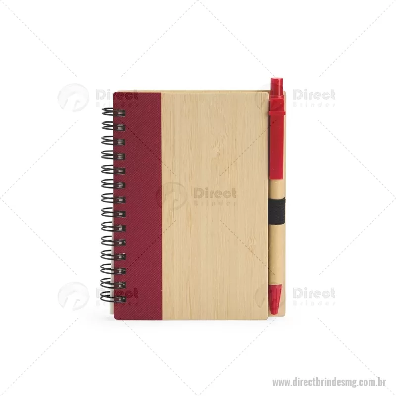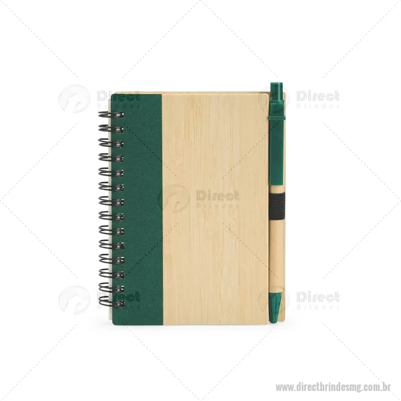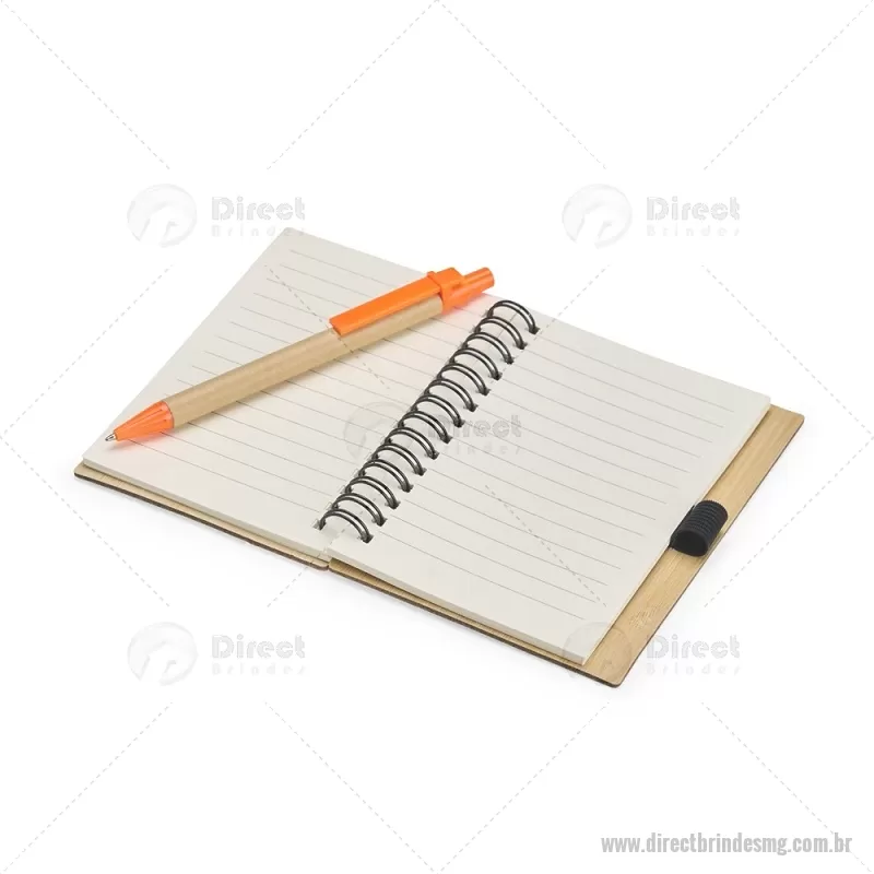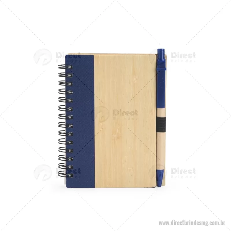 Caderno Ecológico com Caneta Descrição: Um caderno feito para quem deseja anotar ideias e projetos sem abandonar a preocupação com o meio ambiente. Com capa feita em casca de bambu e faixa vertical colorida, ele conta também com encadernação Wire-O e aproximadamente 70 folhas amareladas pautadas. Além disso, o caderno acompanha uma caneta esferográfica de carga azul de 0,8 mm com corpo em papelão e clip, acionamento em clique e ponteira em plástico. A capa contém um elástico para abrigar a caneta junto ao caderno. Largura : 10,5 cm x Espessura : 1 cm x Comprimento : 13,5 cm Tamanho total aproximado (CxL): Caneta: 14 cm x 1 cm Peso aproximado (g): 93 - - DRTMGBLC265