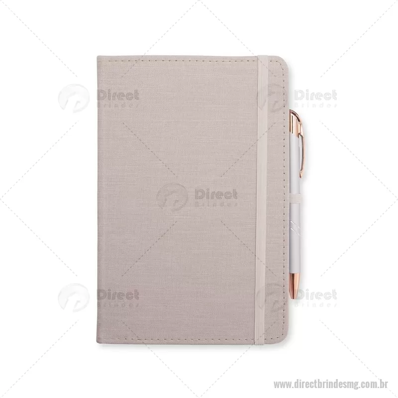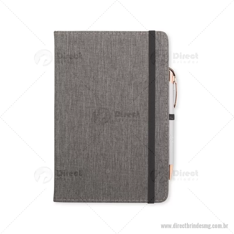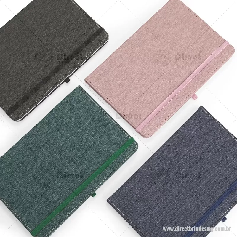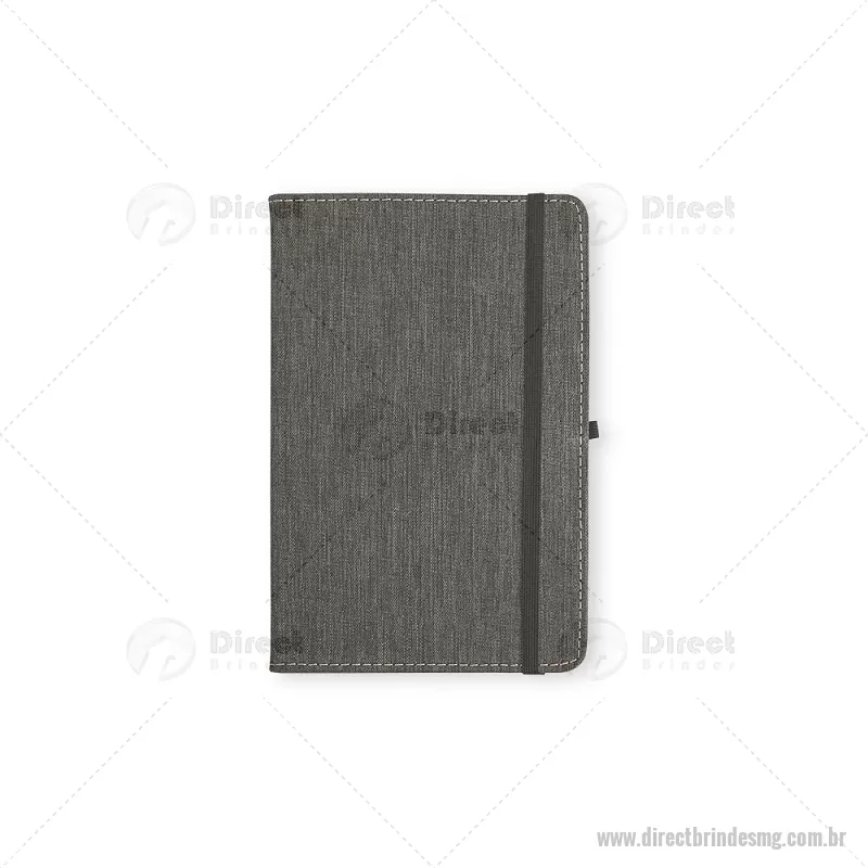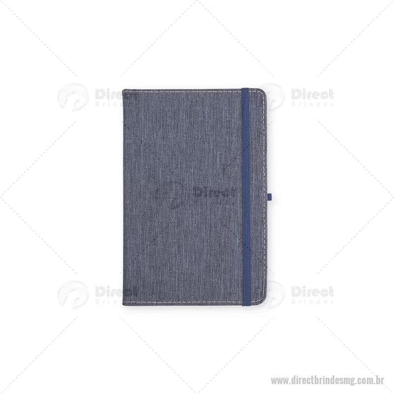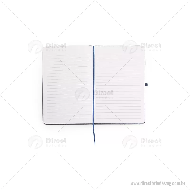 Caderneta com capa dura em linho, equipada com elástico para fechamento, marca-páginas em fita de cetim e porta-caneta. Contém aproximadamente 80 folhas pautadas, ideal para anotações do dia a dia. - - DRTMGBLC271