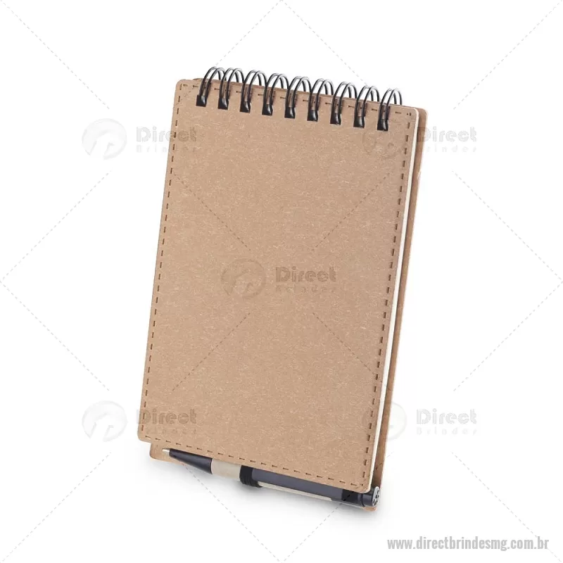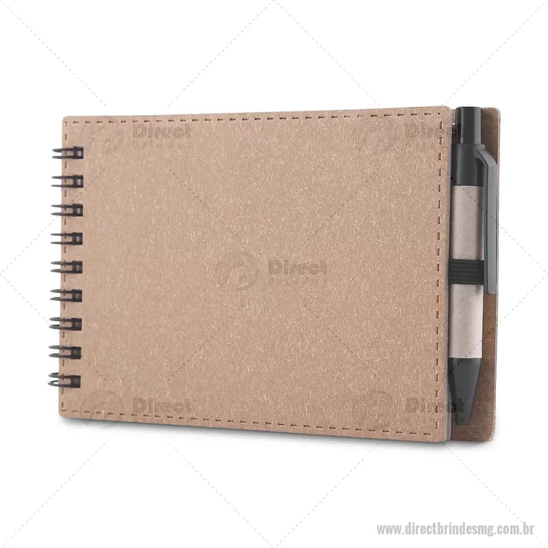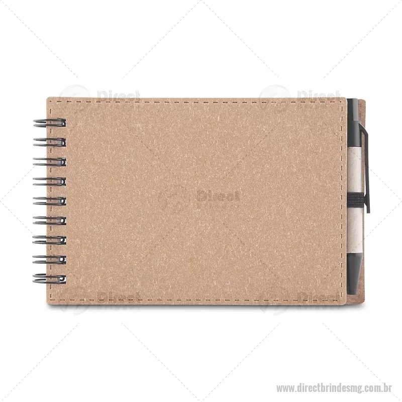Mini Bloco/ Caderno A6 de anotações com caneta Mini Caderno com capa em papelão e encadernação espiral wire-o, 70 folhas sem pauta em 70g/m². Acompanha caneta confeccionada em papelão reciclado com detalhe em plástico. Dimensão Produto: 14x9cm (Caderno) Dimensão Produto: 8,3xø1cm (Caneta) Peso do Produto: 0,084kg - - DRTMGBLC277