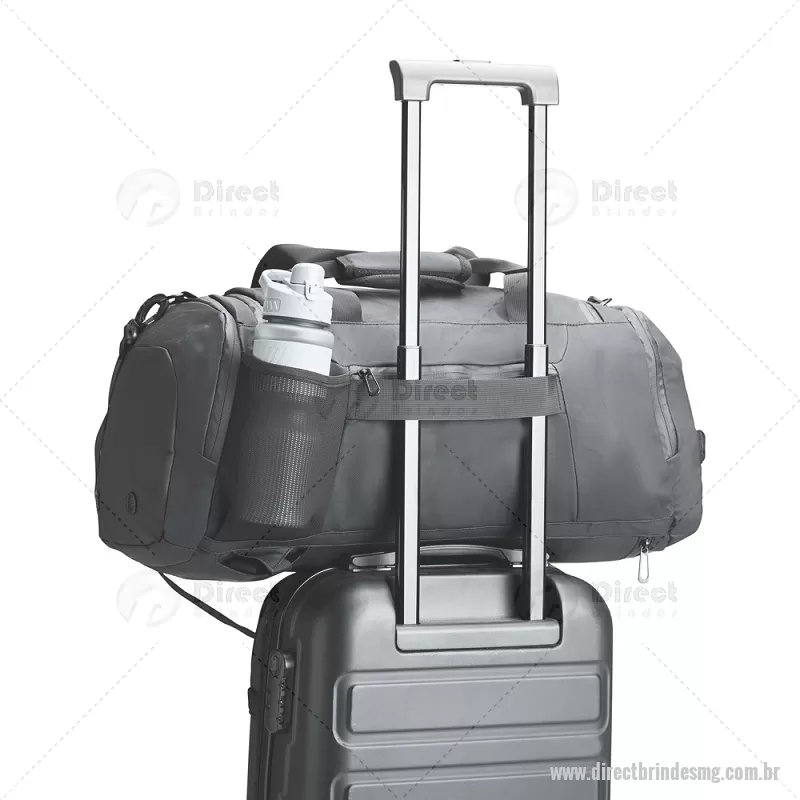 Bolsa em filme sintético tipo couro impermeável, com capacidade de 35 litros. Possui compartimento interno amplo com dois bolsos em tela e zíper, além de cinco bolsos externos. Conta com alças de mão, alças ocultas que permitem uso como mochila e alça transversal removível. Versátil e prática para diversas ocasiões. - - DRTMGBOL049