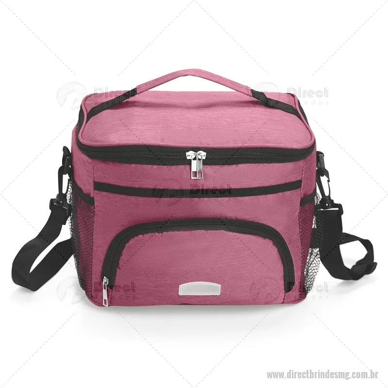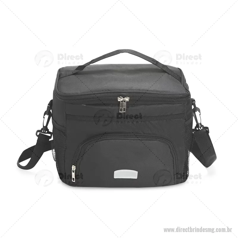 Bolsa térmica de 10 litros feita em poliéster resistente à água, com revestimento interno em PVC laminado. Conta com bolso frontal com zíper, dois bolsos laterais em tela, alça superior fixa e alça transversal removível. Prática e ideal para levar alimentos e bebidas no dia a dia. - - DRTMGBT103