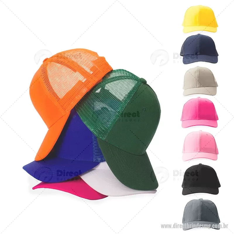 Boné de aba curva em poliéster com laterais em tela de nylon respirável. Possui fecho plástico ajustável na parte traseira, garantindo conforto e praticidade no uso diário. - - DRTMGBON011