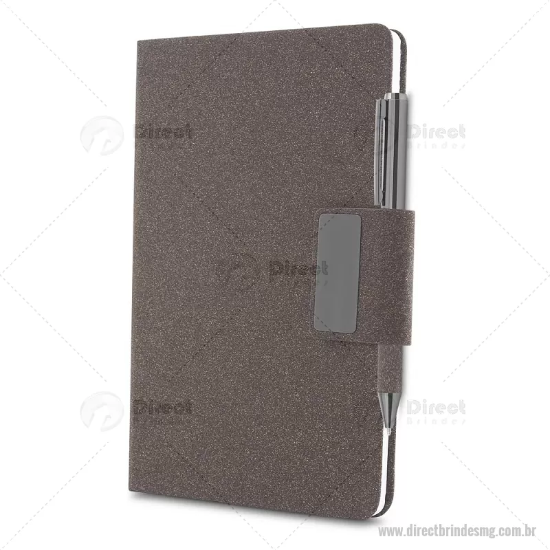 Caderno A5 em PU e fibra de café ou chá. Caderno de anotações com capa em PU e fibra de chá ou café, 80 folhas 70 g/m², engate para caneta com fechamento magnético e placa de metal,não acompanha caneta. Peso do Produto: 0,236kg Dimensão do Produto: 20,7x13,2cm - - DRTMGBLC273