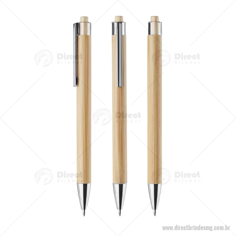 Caneta com corpo em bambu, acionador em bambu com detalhe plástico, ponteira e clipe cromado. Dimensão Produto: 14xø1cm Peso do Produto: 0,007kg - - DRTMGCPECO072