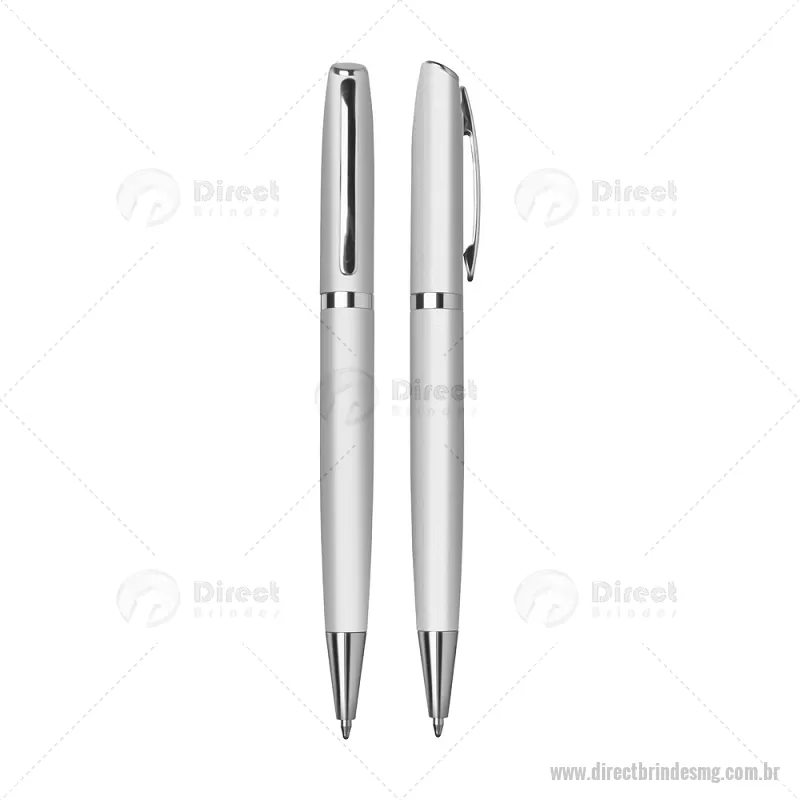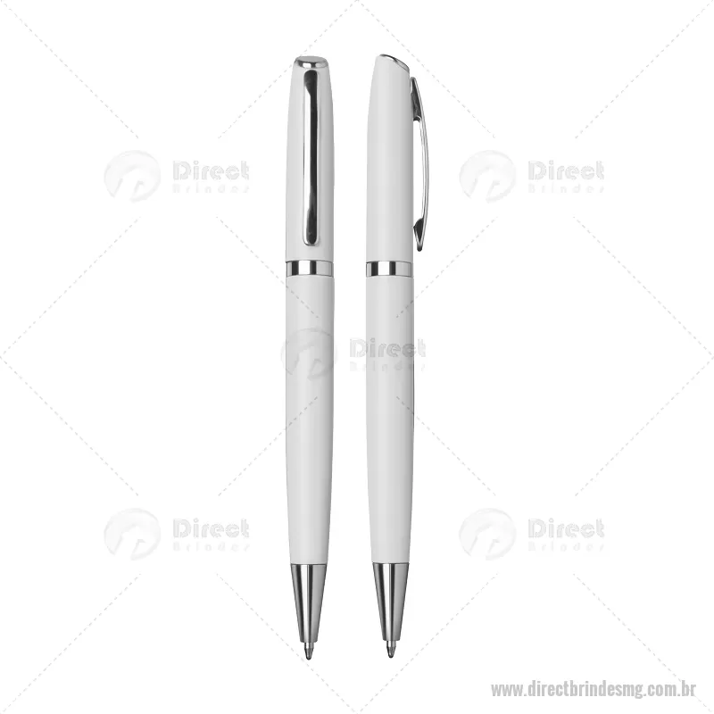 Caneta de Alumínio esferográfica. Acionamento retrátil por giro com detalhe prateado e escrita macia azul. Consultar cores disponíveis. Gravação a laser. - - DRTMGCMT086