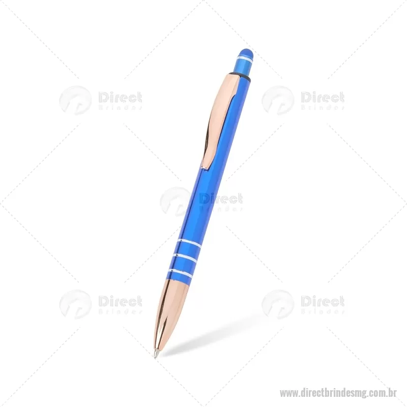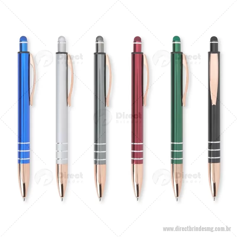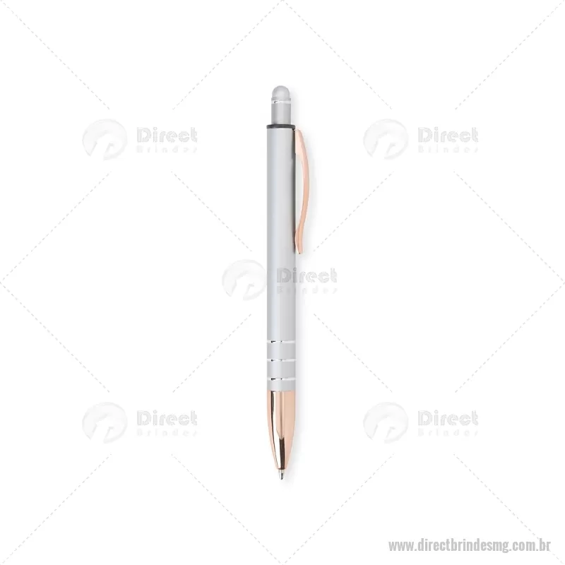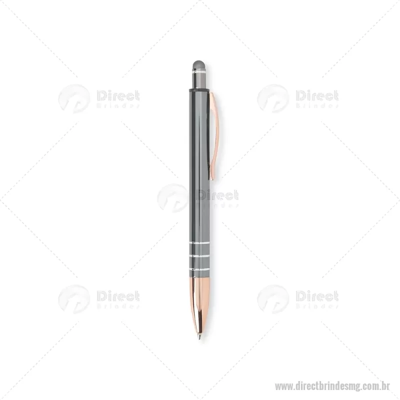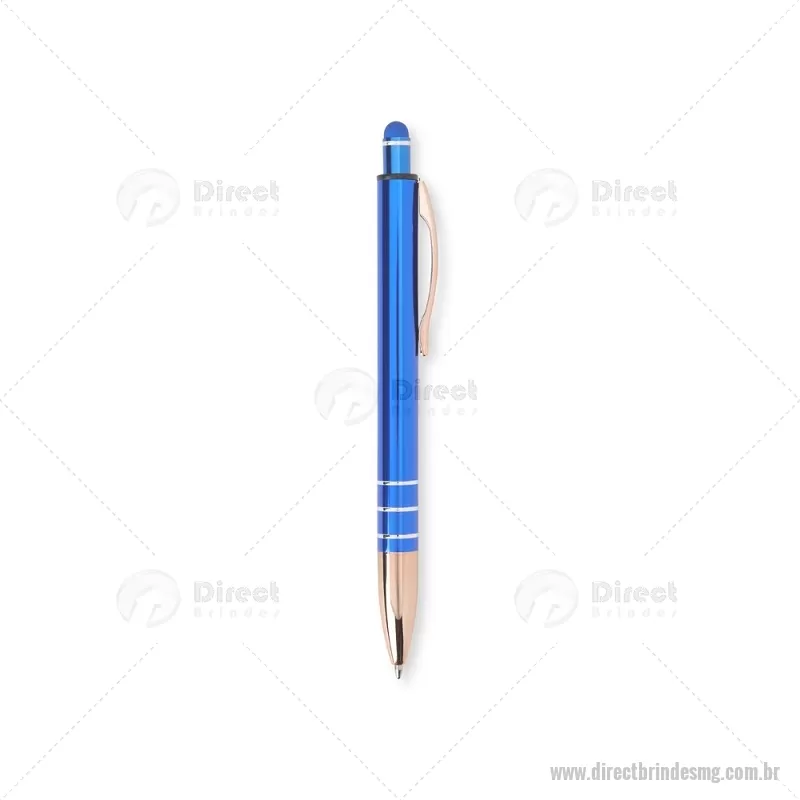 Caneta Metal Touch Caneta metálica com acionador touch, clipe metálico e ponteira plástica. Carga esferográfica azul 1.0mm e acionamento por clique. Largura : 1,6 cm x Comprimento : 14,4 cm Peso aproximado (g): 17 - - DRTMGCMT291