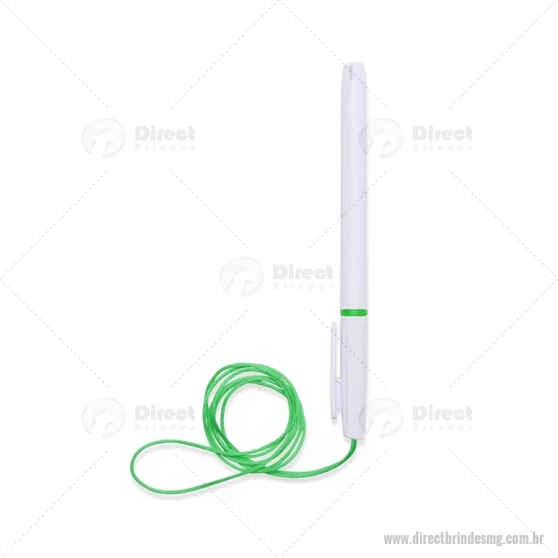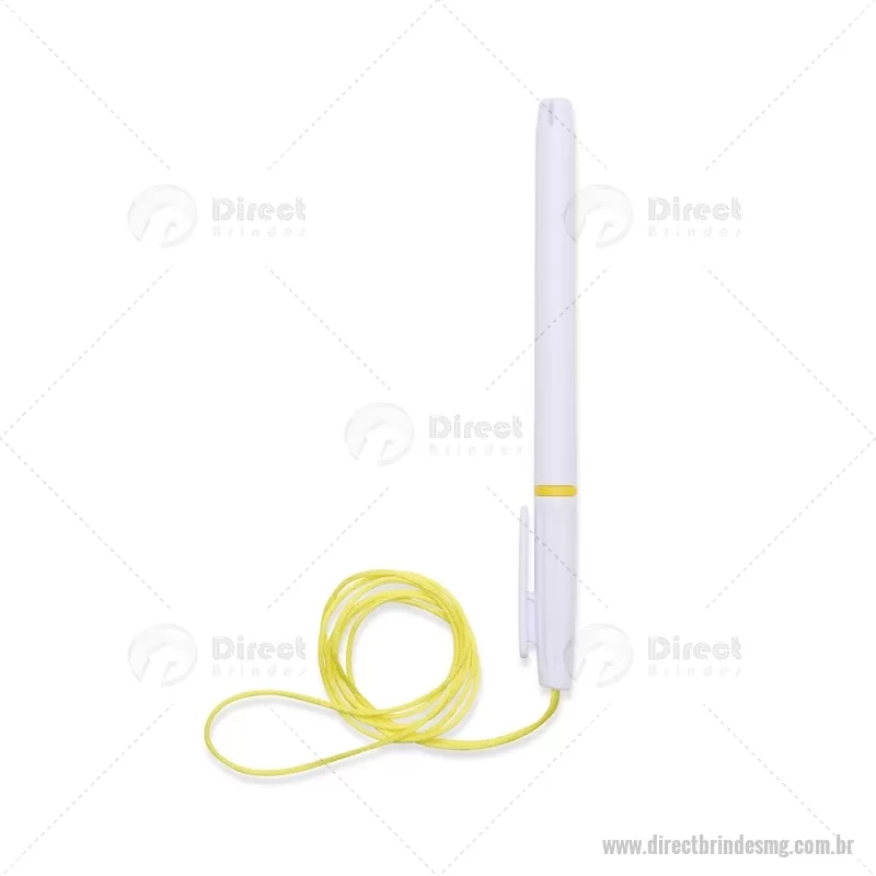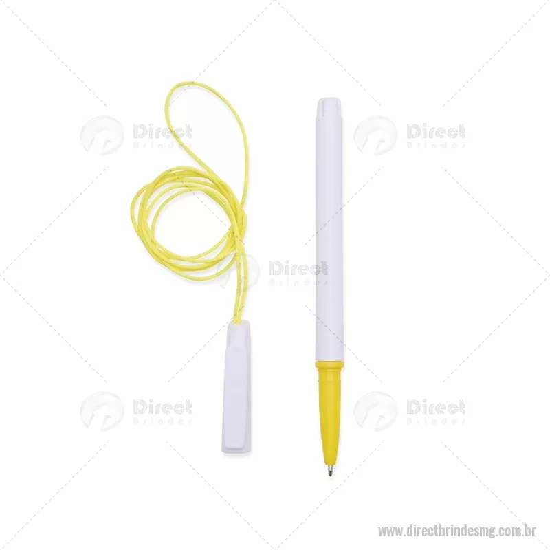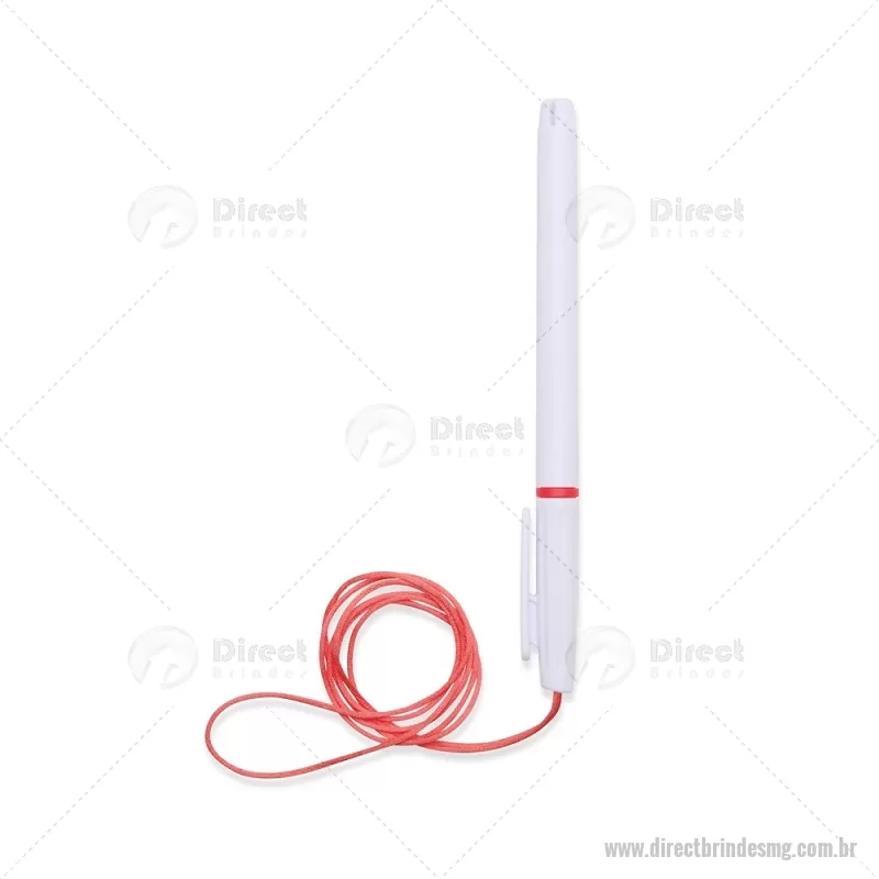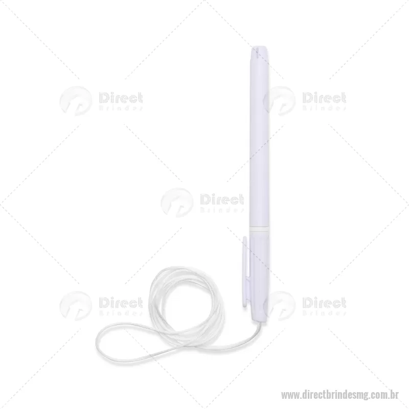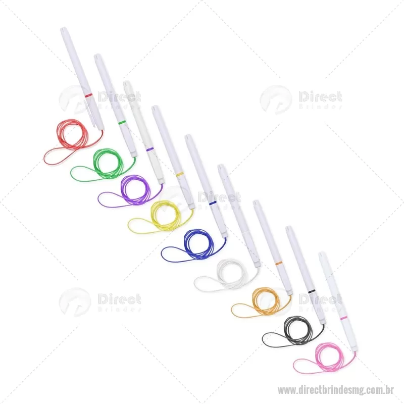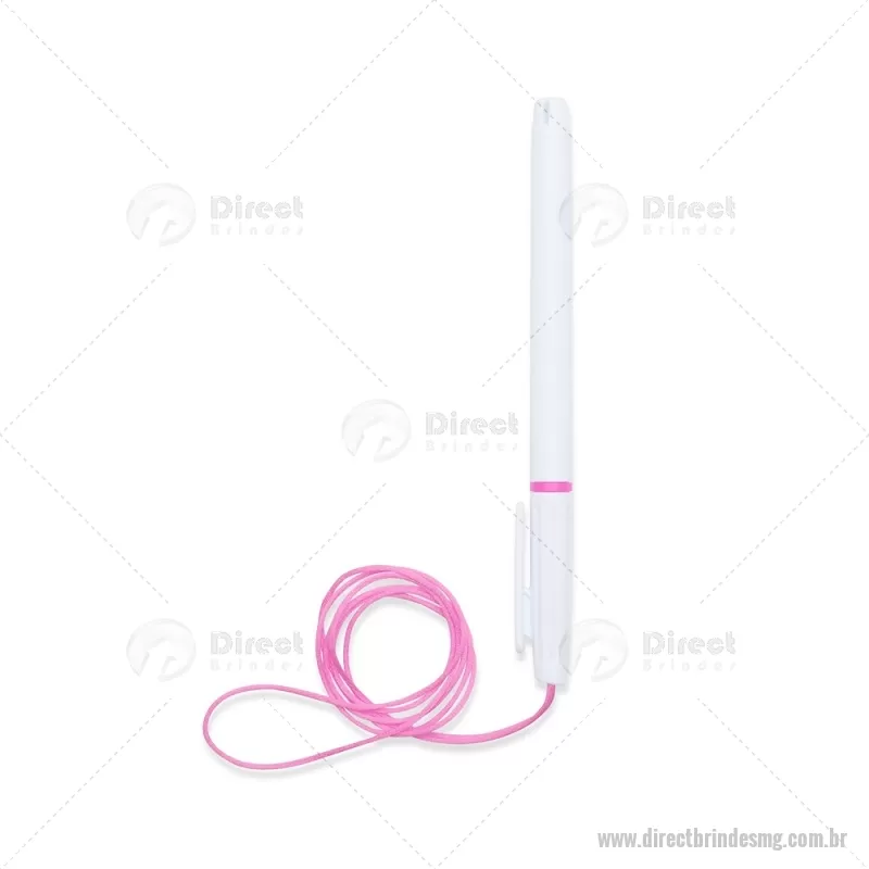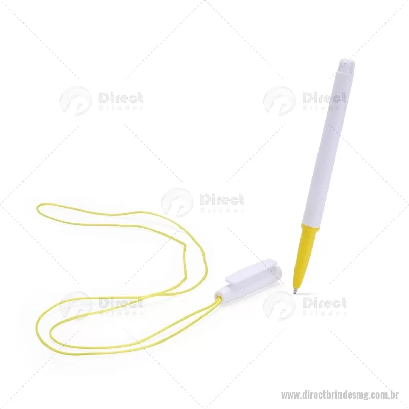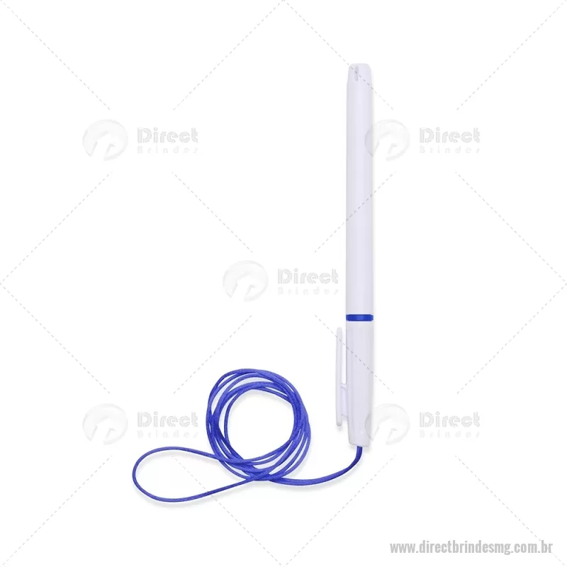 Caneta plástica com carga esferográfica azul 1,0 mm, acompanhada de cordão em nylon de 42 cm fixado na tampa. Leve e prática para uso diário. - - DRTMGCPL208
