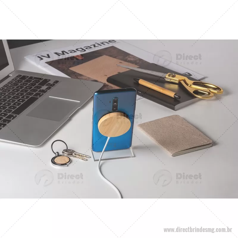 Carregador magnético por indução super-rápido em bambu 15 W Carregador magnético por indução (wireless) super-rápido em bambu. Potência de carregamento super-rápido de 15W. Incluso cabo de carregamento USB-C de 1 metro. Compatível com dispositivos móveis com tecnologia de carregamento sem fios. Fornecido em caixa presente de papel kraft reciclado. A cor e o resultado da impressão nos materiais naturais pode variar entre produtos. Medidas Produto: Ø59 x 8 mm Peso do Produto (g.): 35 - - DRTMGTEC533