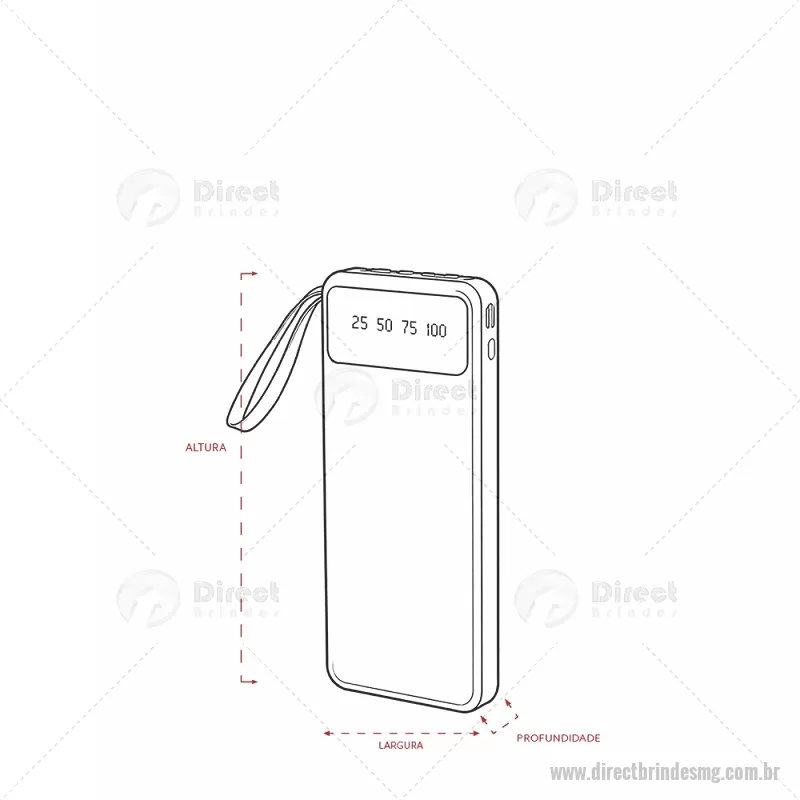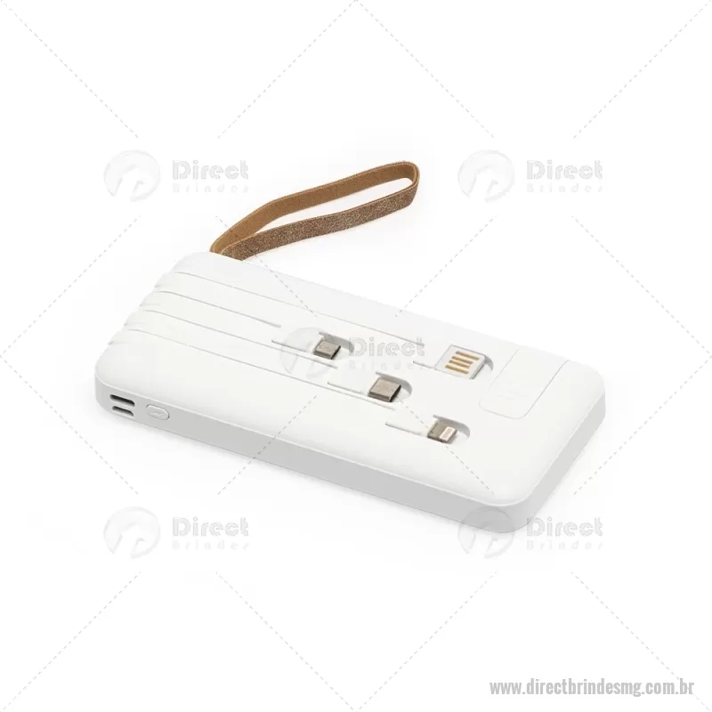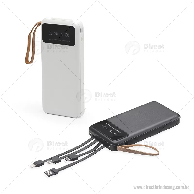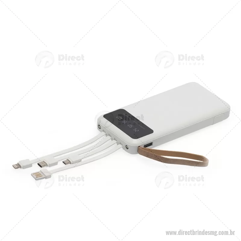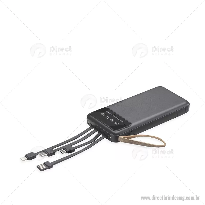 Power Bank 10.000mAh com Lanterna e Multissaídas Descrição: Carregador power bank de 10.000mAh com lanternas, múltiplas saídas e suporte para celular. Fabricado em plástico com display integrado, este power bank vem equipado com quatro cabos de carregamento, eliminando a necessidade de transportar cabos extras. Compatível com entradas V8, Tipo-C, Lightning e USB, praticidade é o sinônimo deste carregador. Com alça de couro sintético e um suporte funcional para celular, estilo gaveta, o power bank possui capacidade real de 6.000mAh para manter os dispositivos sempre carregados. Acompanha cabo USB-V8. medidas: Altura : 14,4 cm x Largura : 6,8 cm x Espessura : 2 cm Peso aproximado (g): 251 - - DRTMGTEC550