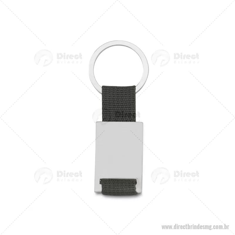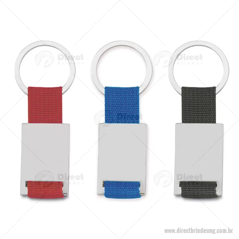 Chaveiro de metal retangular com detalhes em nylon + caixa com berço aveludado. Obs.: Frente e versão são iguais. Dimensão Produto: 8,5x3,4cm (AxL) Peso do Chaveiro: 0,025kg Peso do berço aveludado: 9g - - DRTMGCHV214