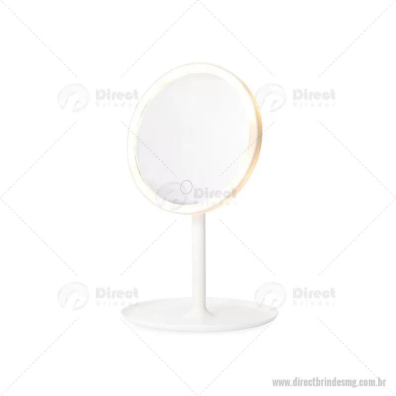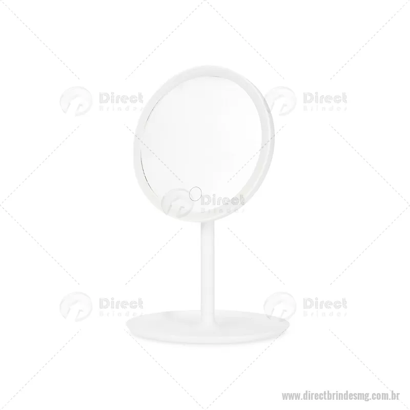Espelho de Mesa Plástico com LED Descrição: Espelho de mesa com estrutura plástica de fácil montagem e rotação de até 90 graus. Possui iluminação em LED recarregável com três níveis de intensidade ajustáveis pelo botão de toque no espelho. Acompanha cabo USB-C. Altura : 30 cm x Largura : 18,5 cm Tamanho total aproximado (CxL): Diâmetro: 15 cm Peso aproximado (g): 273 - - DRTMGFEM117
