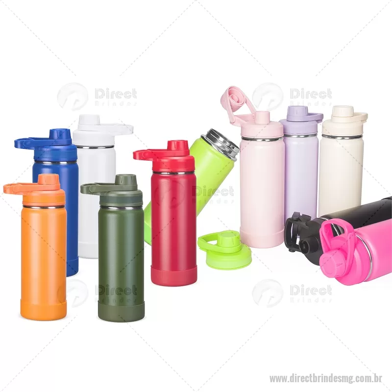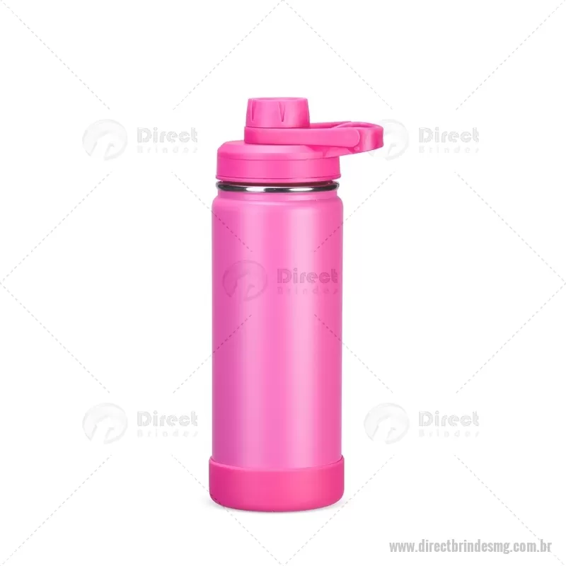 Garrafa Térmica 550ml inox com pintura eletrostática. Mantém a temperatura de líquidos por mais tempo graças à estrutura de parede dupla e ao isolamento a vácuo. Possui tampa plástica rosqueável com protetor de bocal e alça fixa. Acompanha protetor removível em silicone para a base. Altura : 22,5 cm x Largura : 7,4 cm x Circunferência : 23,3 cm Tamanho total aproximado (CxL): Diâmetro: 5,5 cm Peso aproximado (g): 290 - - DRTMGGAT172