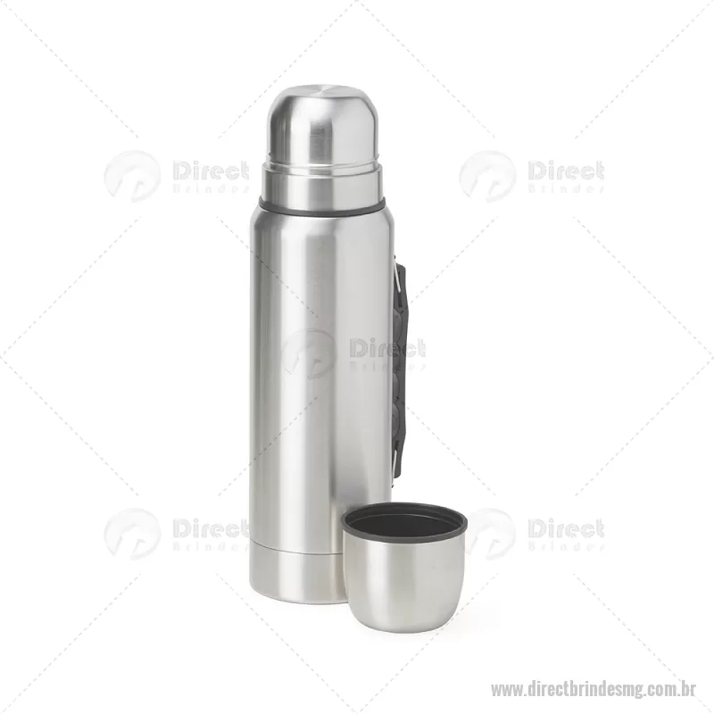 Garrafa térmica de inox 1 litro com parede dupla e tampa dupla. Com alça plástica para transporte, a garrafa contém duas tampas utilizáveis como copos. Altura : 35,7 cm x Largura : 10,6 cm x Circunferência : 29,8 cm Tamanho total aproximado (CxL): Diâmetro sem tampa 4,9 cm Peso aproximado (g): 659 - - DRTMGGAT088