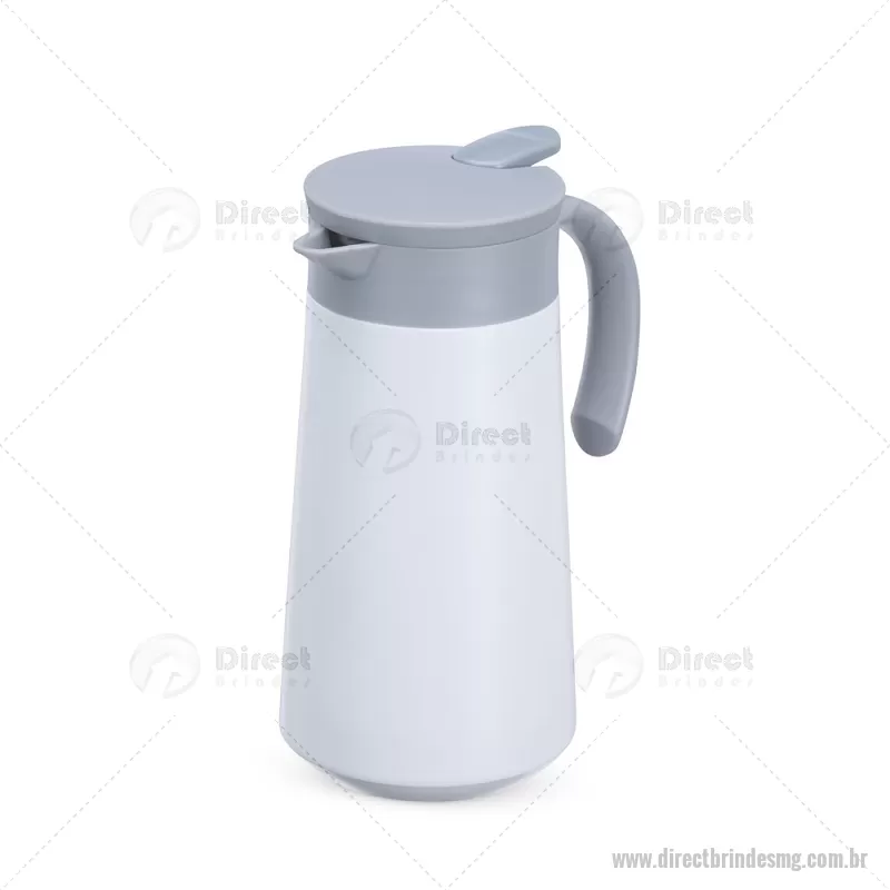 Garrafa Térmica 800ml feita em Inox 304 com parede dupla. Tampa rosqueável com alavanca que abre/fecha para servir a bebida.