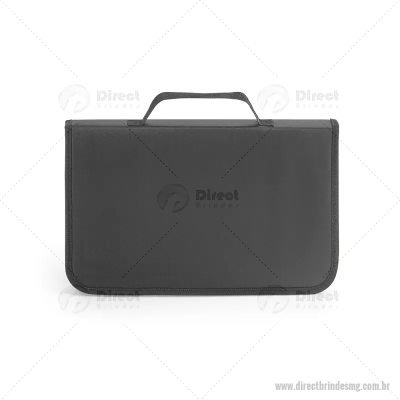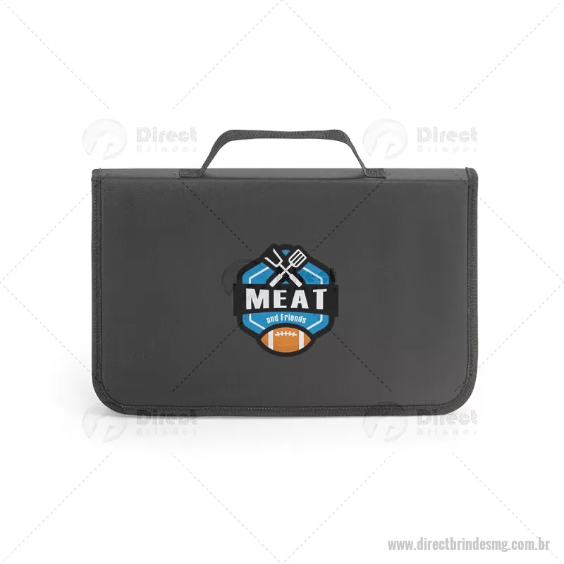 Kit churrasco em estojo de nylon 210D com tábua em PP e 5 utensílios em aço inox e PP: faca chefe, faca boning, faca pequena, garfo e afiador. Certificação EU Food Grade. Estojo: 350 x 230 x 40 mm | Tábua: 283 x 192 x 5 mm - - DRTMGKCH056