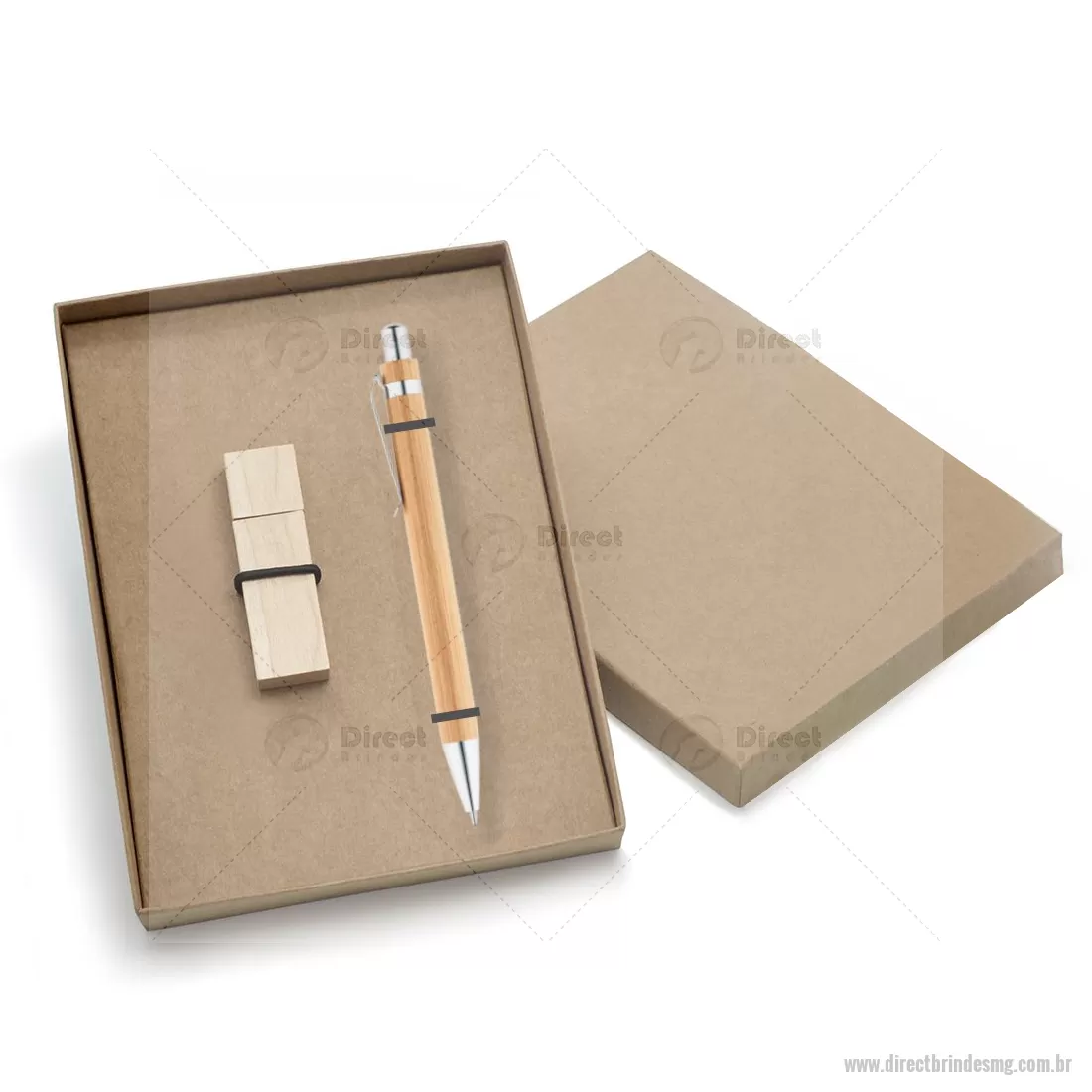 Kit ecológico executivo Personalizado. Contém: 1 Pen drive eco* 1 Caneta (CPECO046) esferográfica feita de bambu. Acondicionada em embalagem kraft com elástico. Ótima opção de brinde para campanhas de marketing e eventos corporativos. - - DRTMGKE009