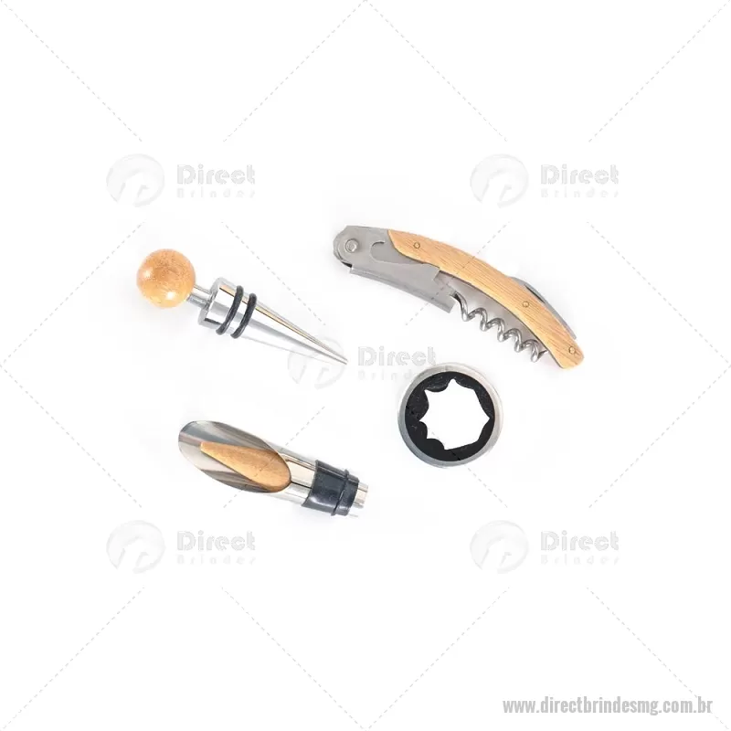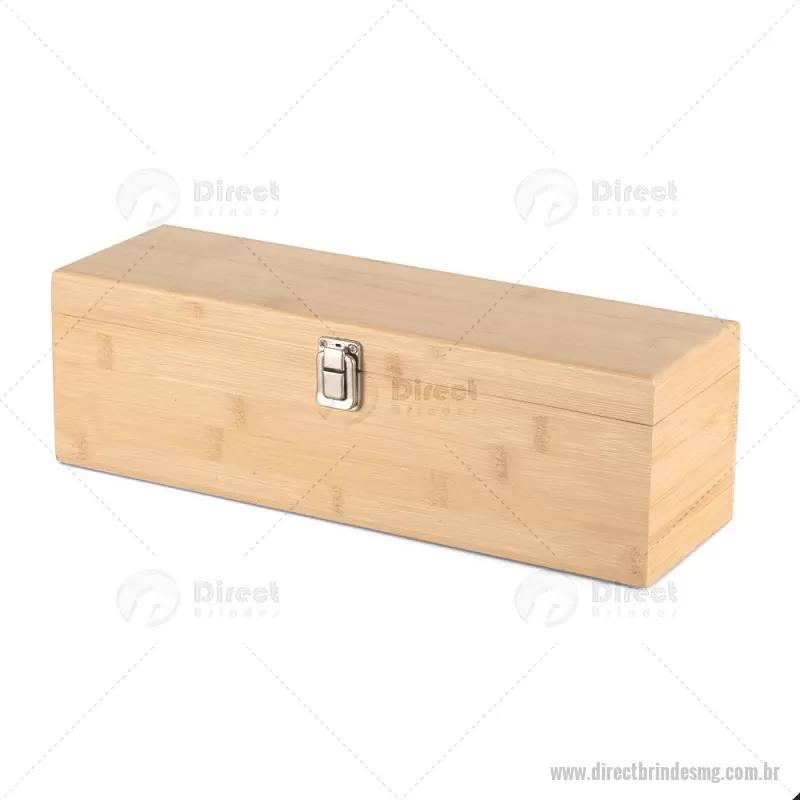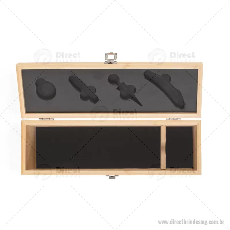Kit Vinho em bambu com interior em EVA e fecho em inox, suporte para garrafa de vinho de 750 ml (padrão). Contém: saca-rolha de metal com detalhes em bambu e cortador de lacre, anel corta-gotas de metal, bico para servir de metal com tampa em bambu e tampa de metal com detalhe em bambu. Peso do Produto: 0,997kg Dimensão do Produto: 11x36x11cm *Não acompanha garrafa vinho, imagem meramente ilustrativa. - - DRTMGKVI051