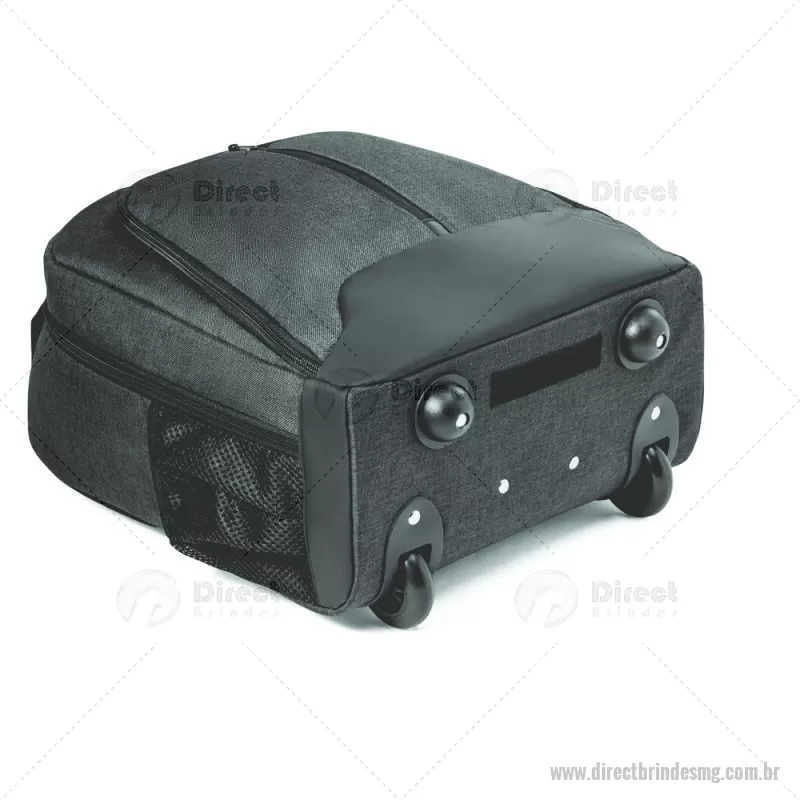Ótima opção para Brinde corporativo personalizado com ótimo custo e qualidade. Mochila trolley com rodinhas para notebook. Feita em Nylon 600D de alta densidade e poliéster 600D impermeável. Para notebook até 15.6''. Bolso frontal com zíper e bolsos laterais com tela. Com protetor de rodas. Pega extensível em metal. Parte posterior e alças almofadadas. Placa metálica removível com imã, para fácil gravação. 340 x 430 x 170 mm. - - DRTMGMC123