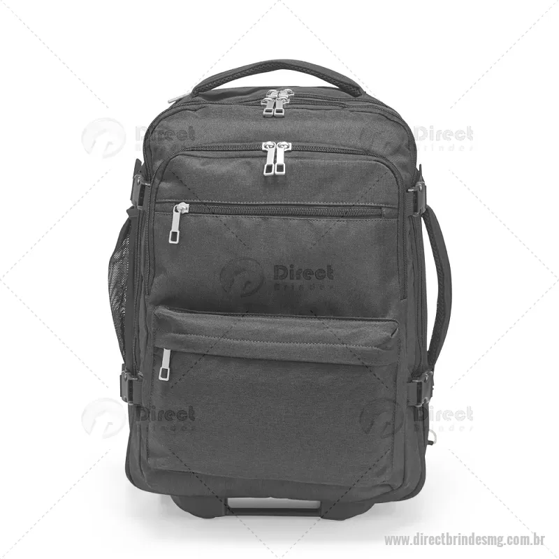 Mochila Poliéster 24L Mochila em poliéster impermeável com capacidade para até 24 litros. Possui compartimento interno principal com dois bolsos de fechamento em zíper e cinta compressora para roupas. Conta ainda com dois compartimentos frontais, sendo um deles com divisória para notebooks de até 15,6 polegadas, um par de bolsos menores com fechamento em zíper e um bolso lateral em tela de nylon. Dispõe também uma alça retrátil contida em um compartimento fechado em zíper e duas rodinhas para oferecer mais uma possibilidade de uso, além de duas alças de mão, uma na parte superior e outra na lateral, permitindo o transporte pela horizontal, e duas alças para as costas com revestimento em tecido acolchoado. Altura : 45 cm x Largura : 31 cm x Profundidade : 16 cm Peso aproximado (g): 2409 - - DRTMGMC241