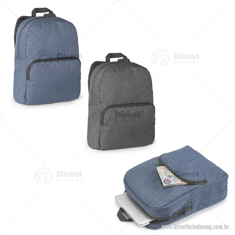 Mochila para notebook. 600D de alta densidade. Compartimento principal com divisória almofadada para notebook até 14". Bolso frontal com fecho. Parte posterior e alças almofadadas. Ótima opção de brinde personalizado para feiras, eventos corporativos e ações de marketing. - - DRTMGMC087
