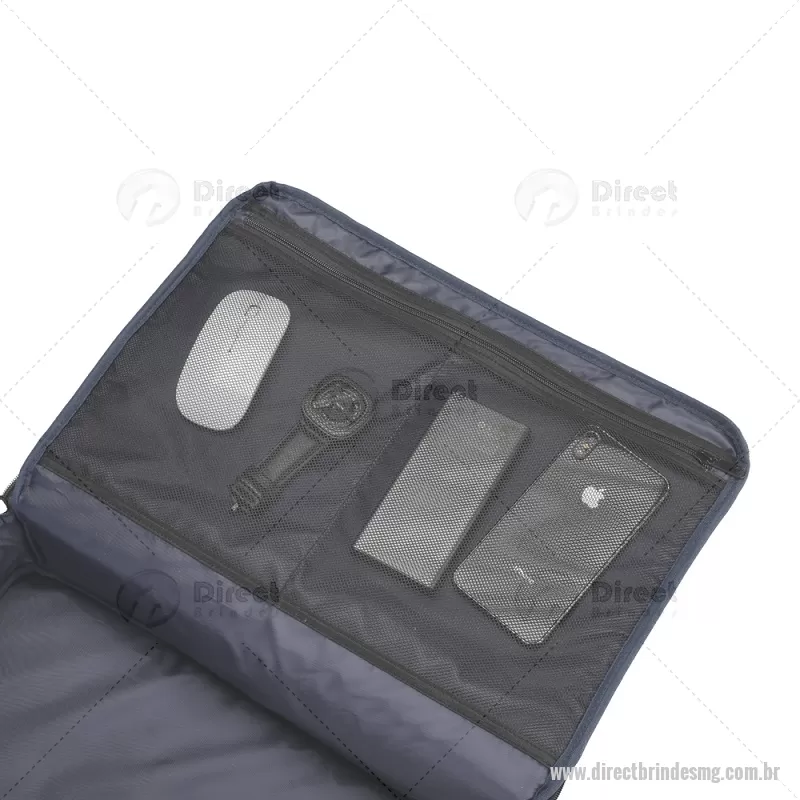 Mochila para Notebook 15,6” produzida em poliéster acolchoado, divisória com ampla abertura para acomodar vestuário e outros pertences, alças de ombro acolchoadas,alça na lateral para locomoção, interior com divisórias com zíper para acomodar pequenos objetos, engate para mala de viagem e porta USB na lateral. - - DRTMGMC221