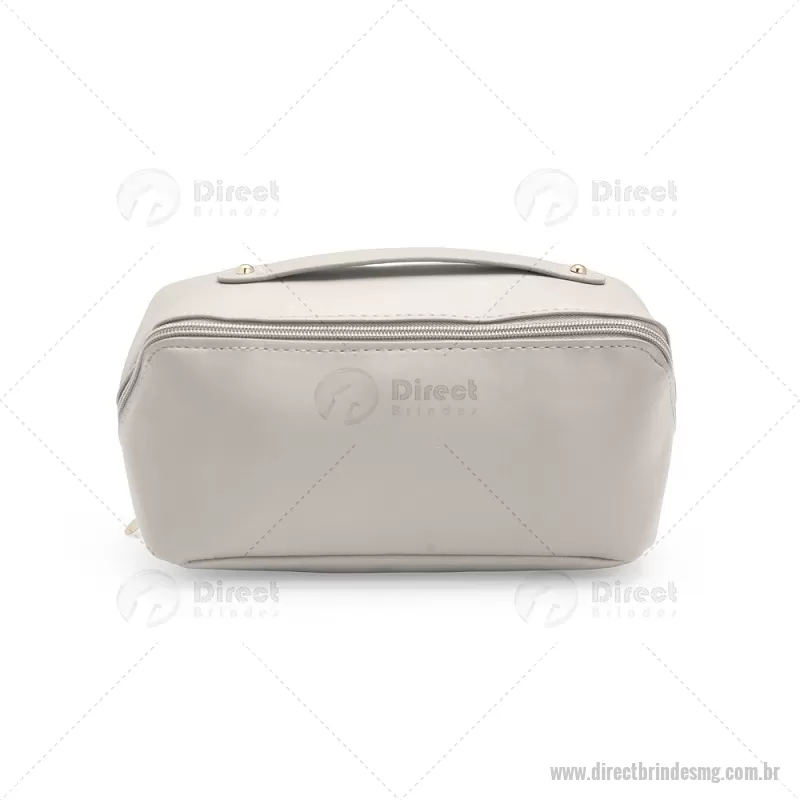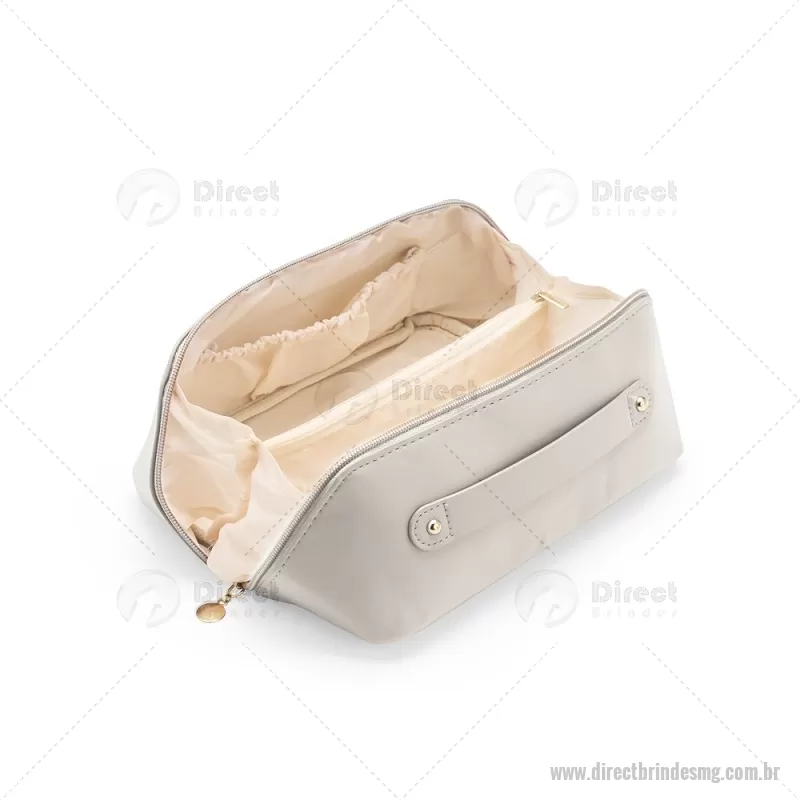 Nécessaire em (PU) poliuretano impermeável com abertura em 180 graus inspirada no formato de concha. O compartimento interno conta com dois bolsos laterais abertos e um, localizado na parte central, com fechamento em zíper. Possui alça para transporte. Altura : 11 cm x Largura : 22,5 cm x Profundidade : 9,5 cm Peso aproximado (g): 108 - - DRTMGNC143