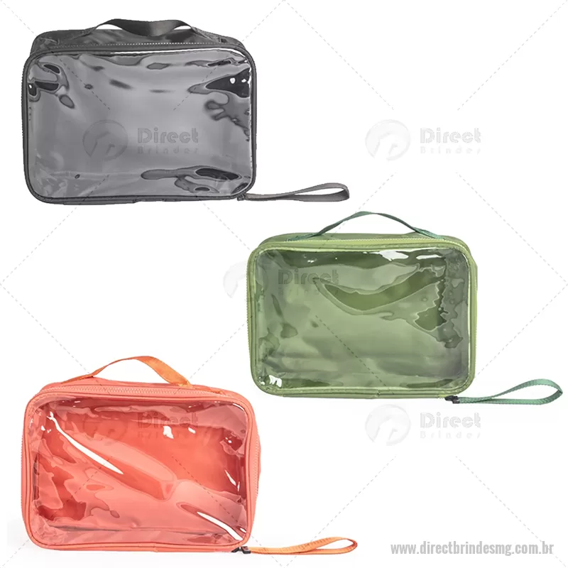 Nécessaire confeccionada em nylon, com frente em visor transparente, fechamento por zíper e alça superior. Inclui também uma alça de transporte em nylon. Altura : 19,5 cm x Largura : 28 cm x Profundidade : 10,5 cm Peso aproximado (g): 159 - - DRTMGNC118