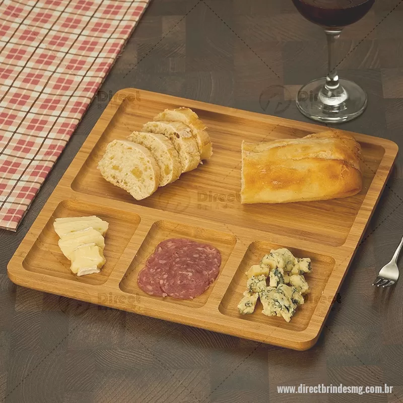 Petisqueira de bambu quadrada com 4 divisórias. - - DRTMGCOZ021