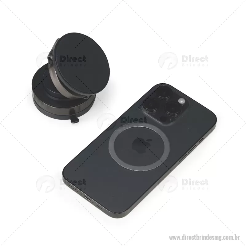 Suporte Magnético Para Celular Suporte magnético em plástico ABS com articulação em diferentes ângulos e rotação de 360 graus no próprio eixo. Possui superfície magnética para fixação de aparelhos na vertical ou horizontal, compatível com dispositivos magnéticos ou com o anel adaptador incluso. Conta com mecanismo giratório para pressão da ventosa em superfícies lisas. Acompanha anel magnético adesivo, placa plástica com adesivo, kit de lenços e chave Allen. Altura : 3,1 cm x Largura : 6 cm x Circunferência : 18,8 cm /br> Peso aproximado (g): 76 - - DRTMGTEC546