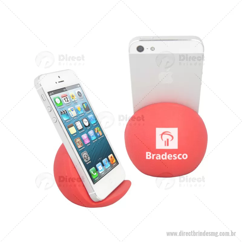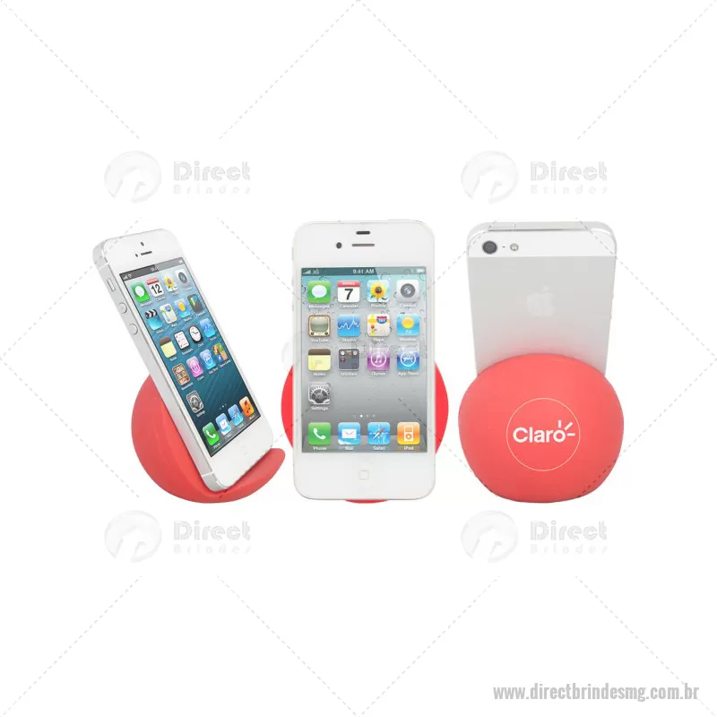 Porta celular / Apoio para smartphone de mesa Personalizado. Feito em vinil oca e disponível em várias cores. Material: Vinil - Especificação: Vinil (Policloreto de vinil) Disponível nas cores: vermelho, azul, azul escuro, azul claro, verde, verde escuro, verde claro, amarelo, laranja, preto, branco. Informação: Pantones específicos a partir de 1000 peças. Tipo de gravação: Tampografia Area de gravação: 40mm Ø Medida Produto: 65mm A x 75mm L x 70mm Peso: 45g Quantidade Mínima: 100 un - - DRTMGTEC065